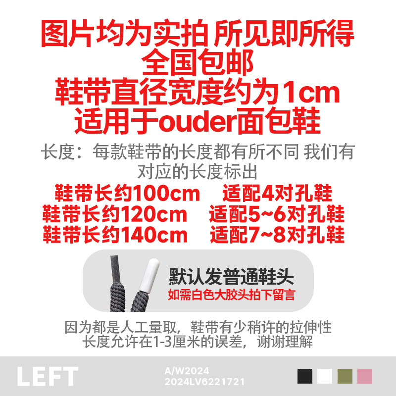 📚 适配开口笑ouder面包鞋lee圆粗鞋带女款麻绳圆形白色男款圆绳