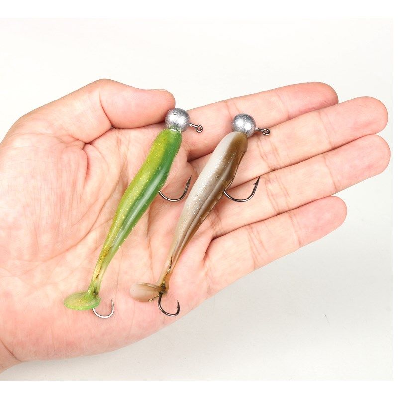 📚 带钩穿好鲈鱼者T尾+尾钩路亚假饵软饵黑坑鲈鱼鳜鱼翘嘴双钩绑好饵