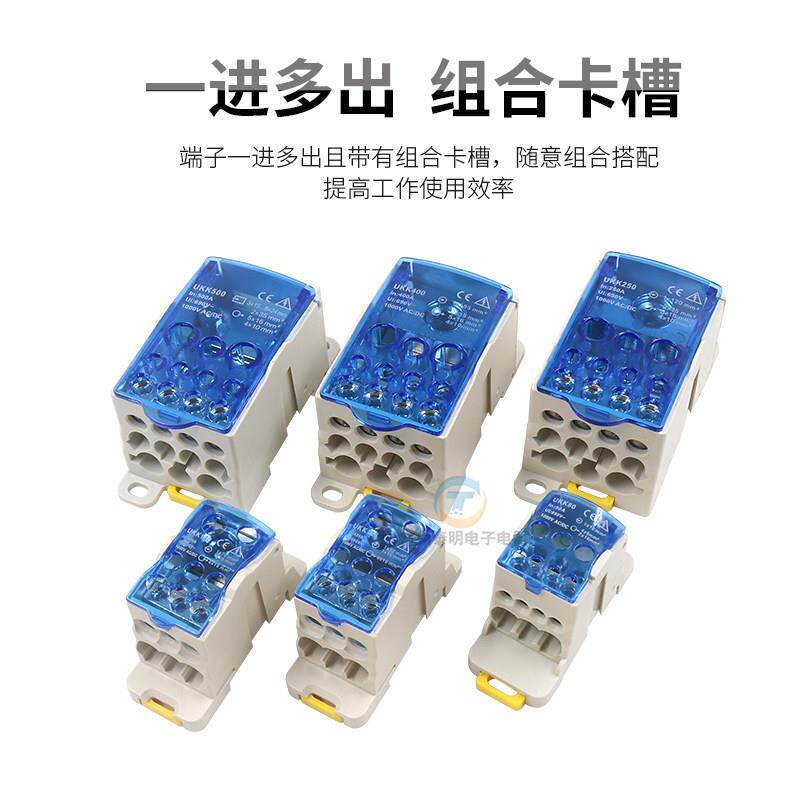 📚 配电箱UKK80分线 线端子250接线 线盒125A排1进6出多路160A卡导轨