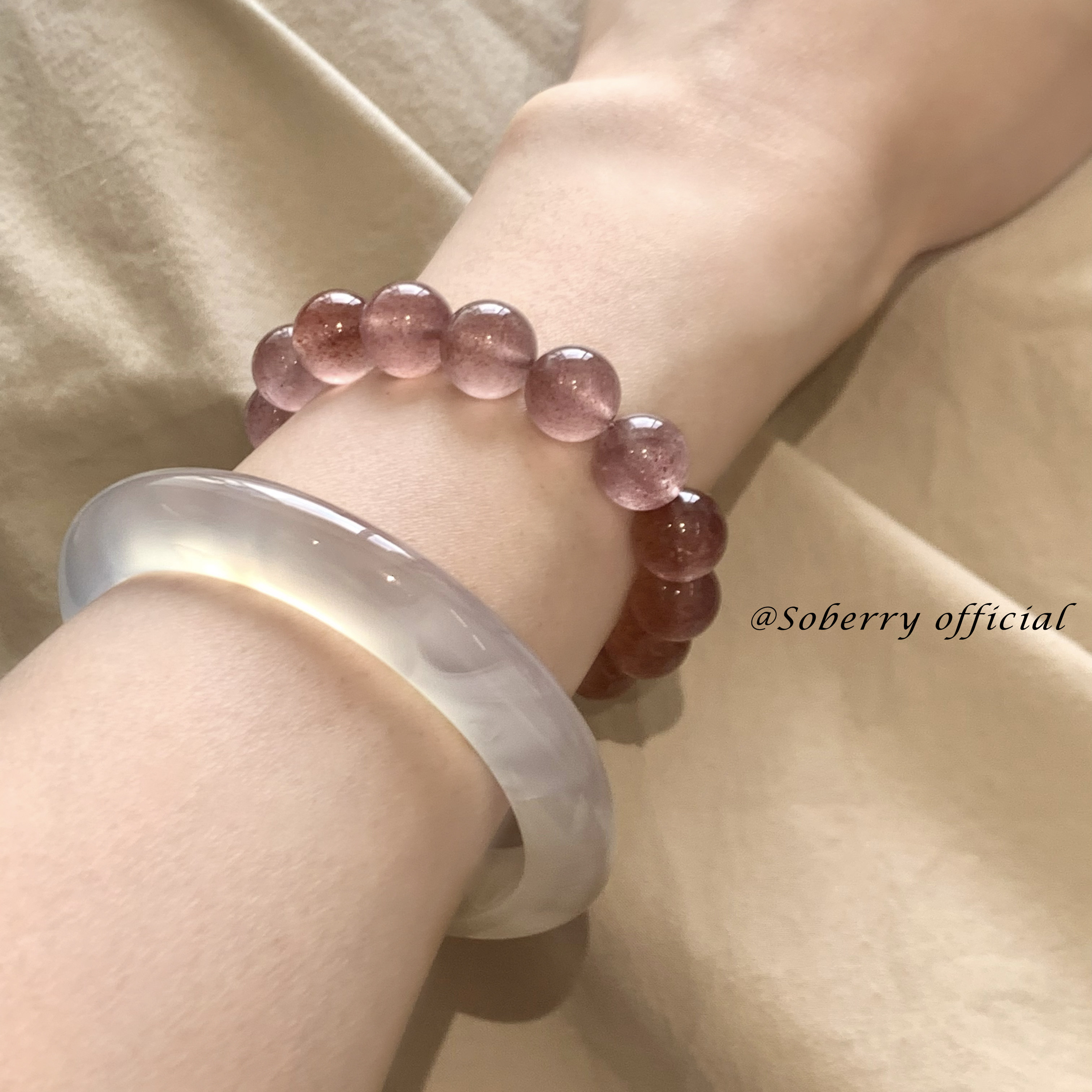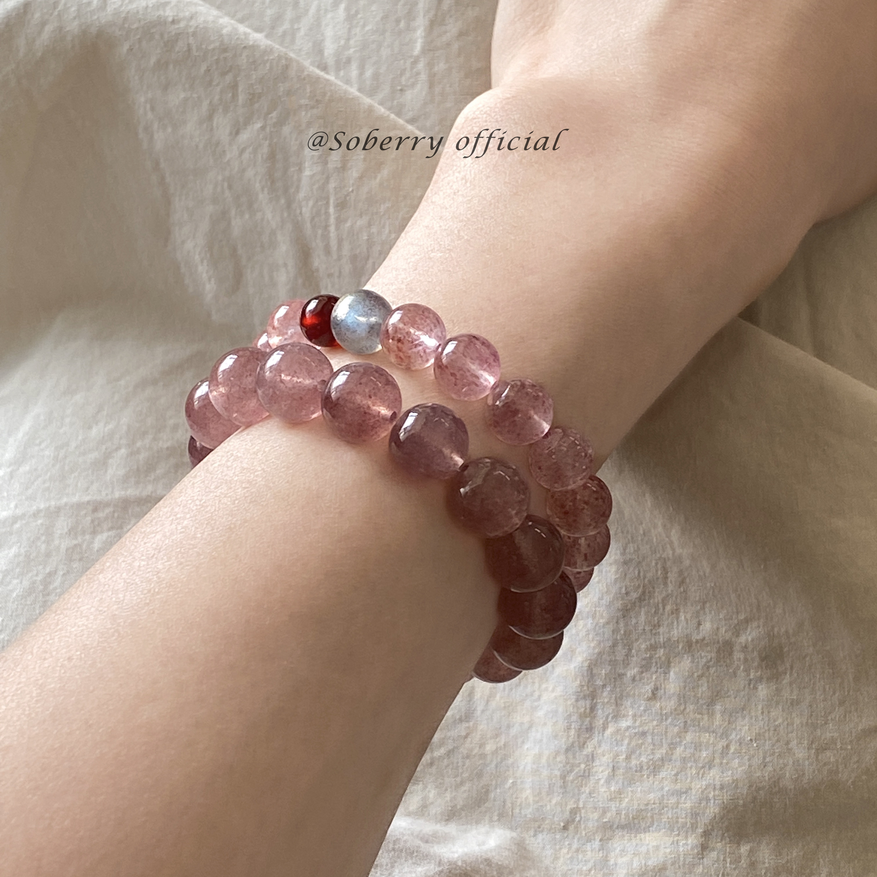 📚 SoBerry「莓果雪」 天然草莓晶百搭通勤手串招桃花水晶手链