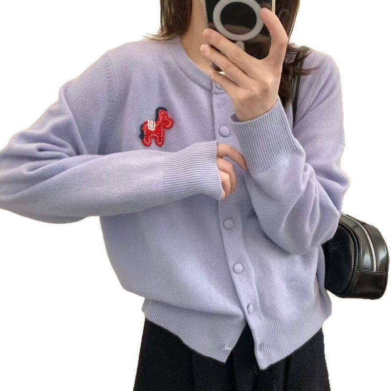 📚 秋季新款全毛圆领小马针织开衫女士软糯洋气百搭毛衣显瘦减龄外套