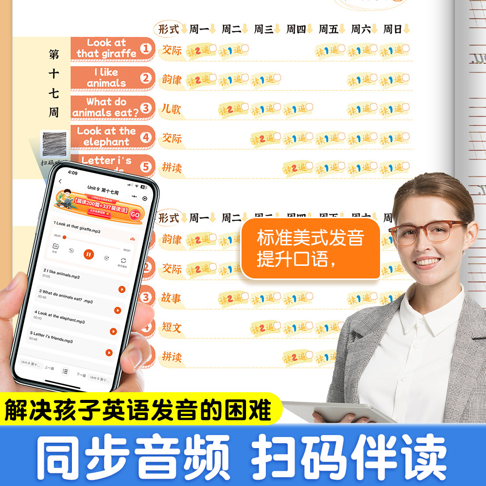 📚 【有声伴读】英语晨读美文小学1-6年级337晨读法读出好英语启蒙口语练习英语课外阅读书每日晨诵暮读小学生自然拼读人教版英语教材