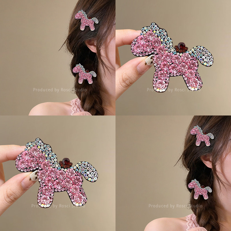 📚 高级感粉色闪钻小马发夹女2026新款独特漂亮刘海侧边夹子甜美头饰