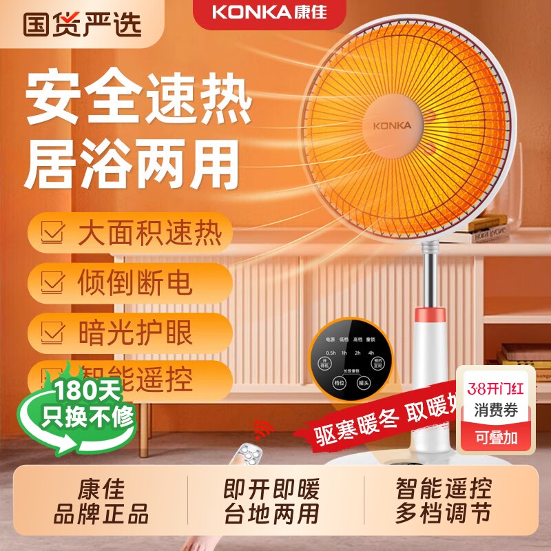📚 康佳小太阳取暖器家用落地升降电热扇节能省电暖气速热小型烤火炉