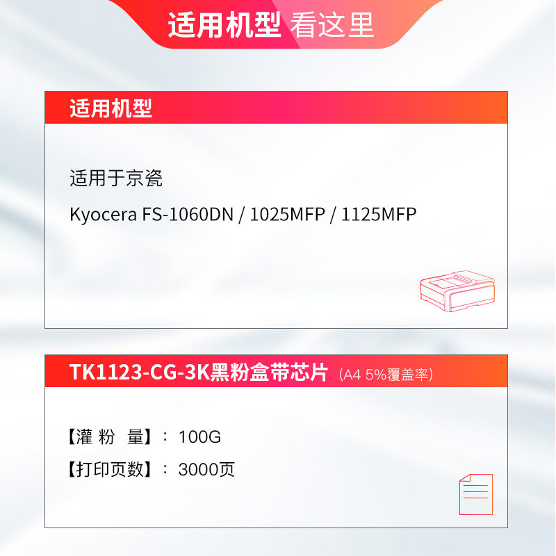 📚 天威-TK1123-CG-3K粉盒适用京瓷Kyocera FS-1060DN/1025MFP/1125MFP碳粉