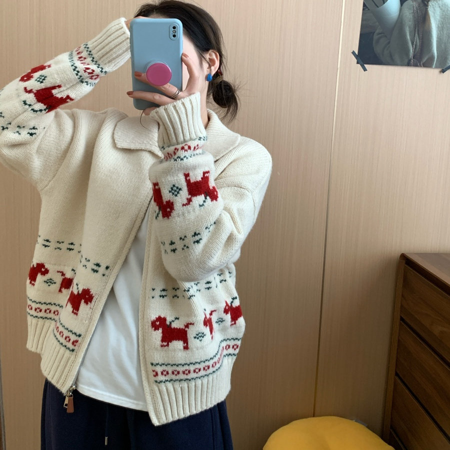 📚 此外 提花小马红色圣诞毛衣外套女2025冬季新款新年翻领针织开衫