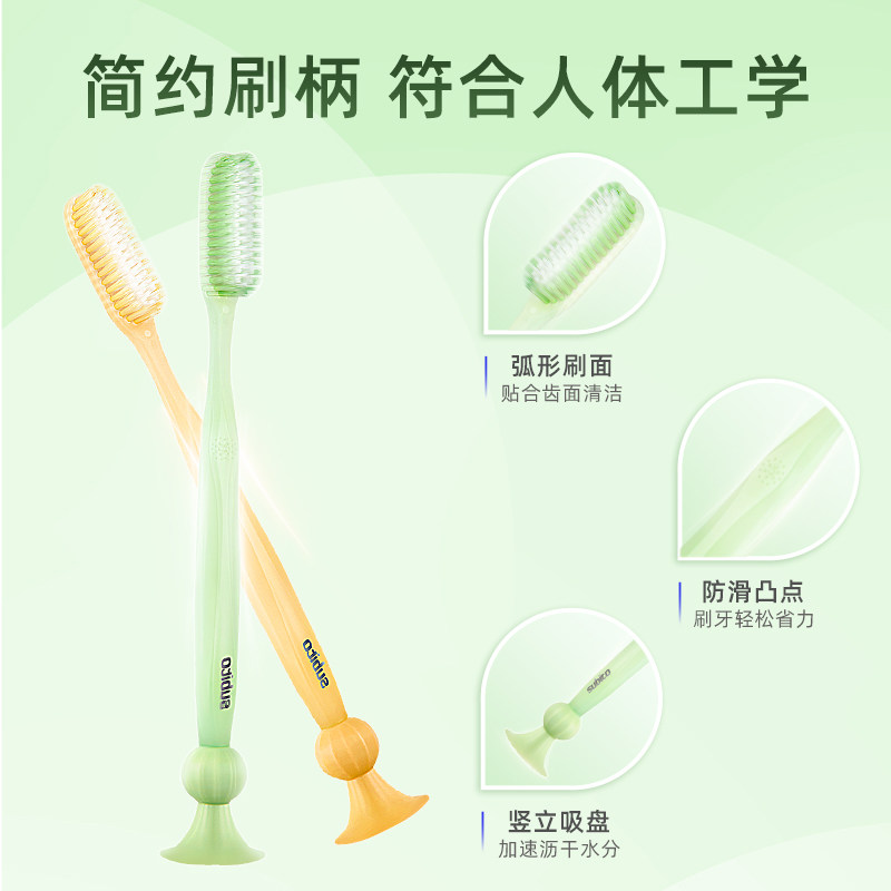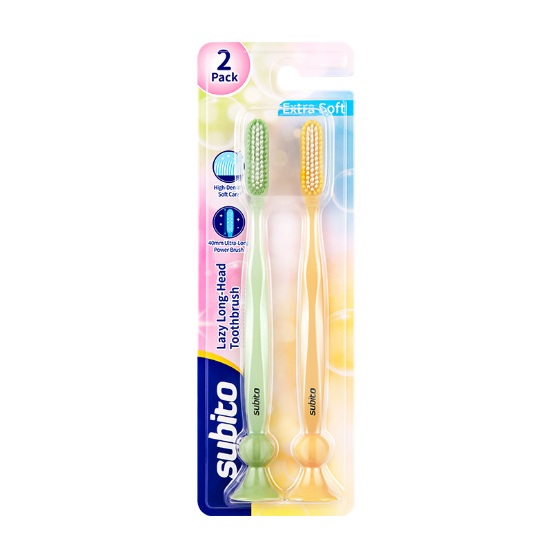 📚 懒人长头牙刷加长刷头细软毛牙刷成人防滑柄底部吸盘情侣家用2支
