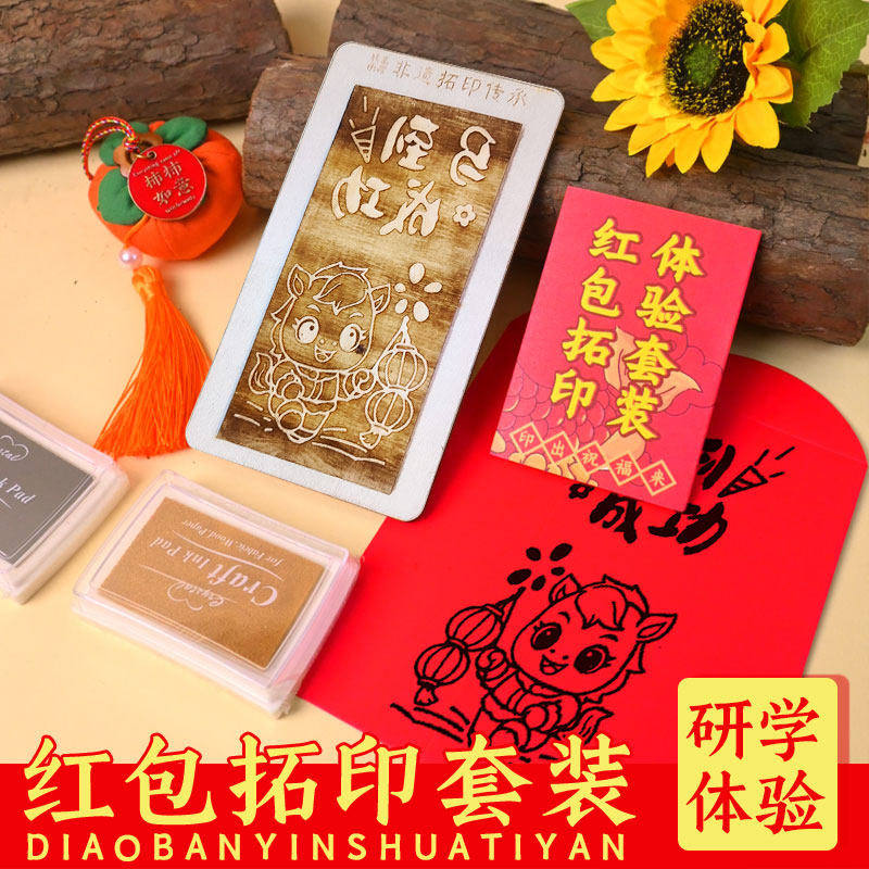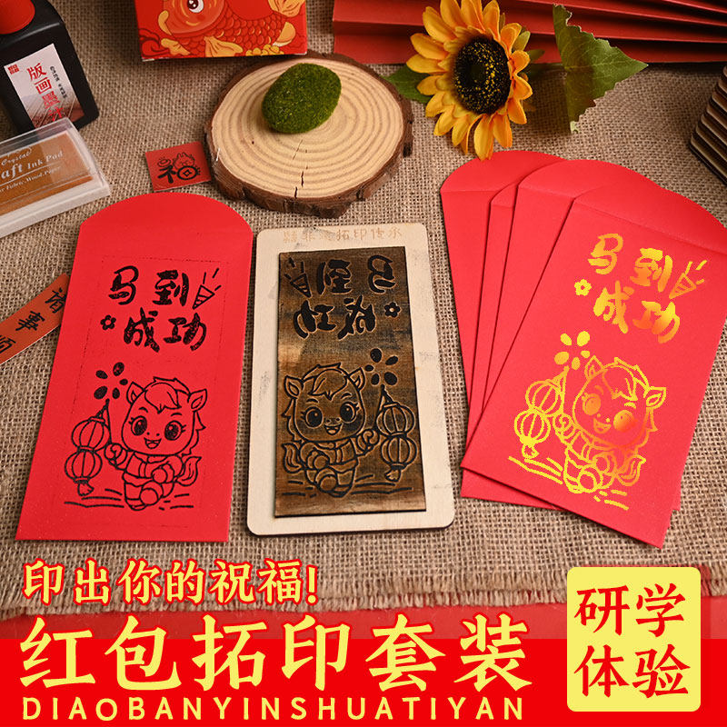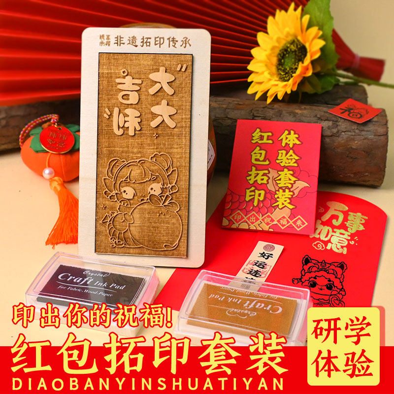 📚 红包手工DIY木板拓印新年画福字雕版印刷画模板滚印刷模具材料包