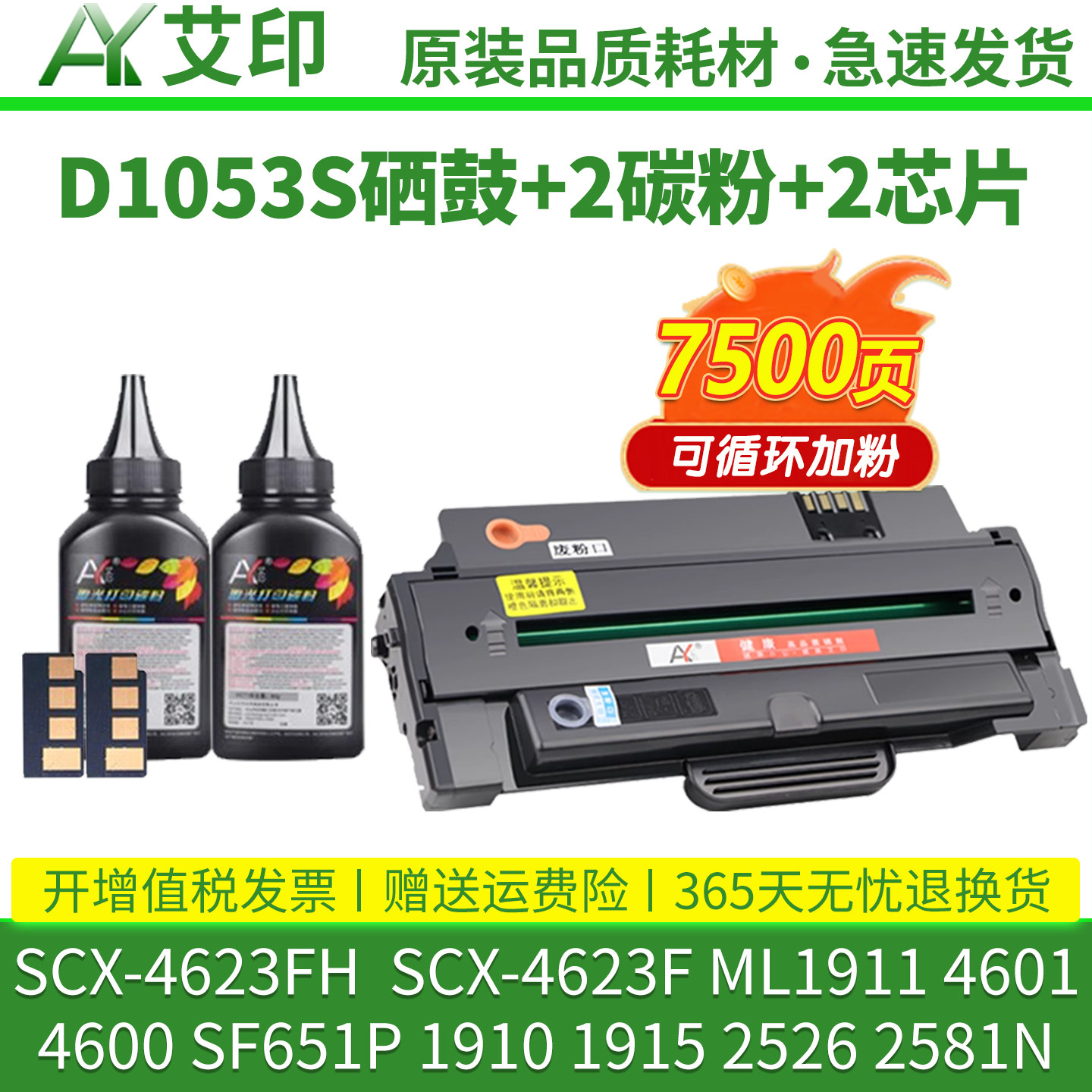 📚 适用三星SCX-4623FH硒鼓4623F ML1911 MLT-D1053S墨盒4601 4600 SF651P 1910 1915 2526 2581N打印机墨粉碳粉