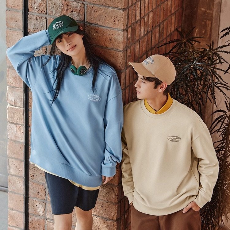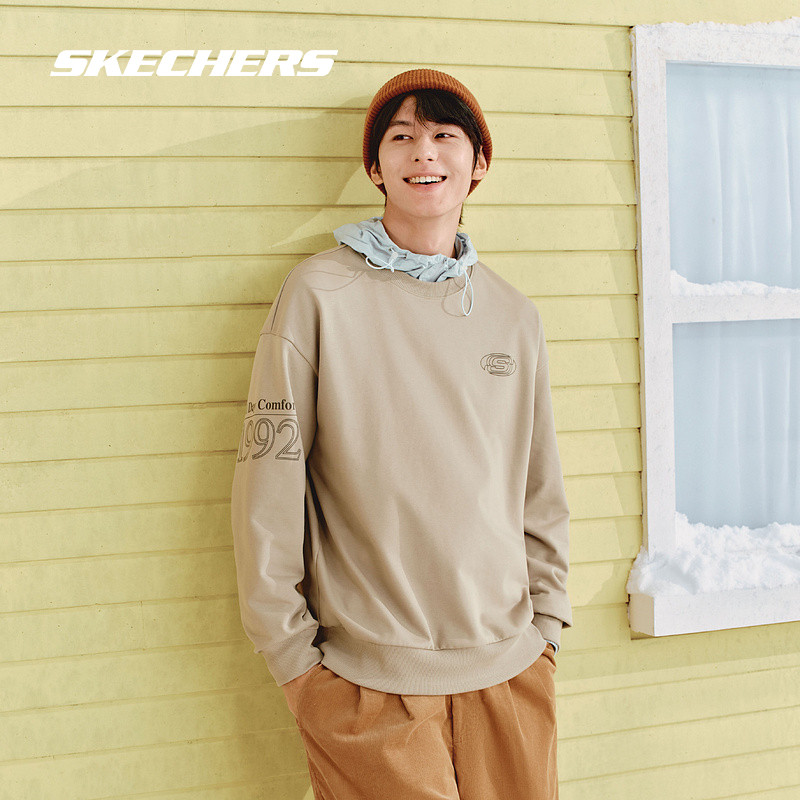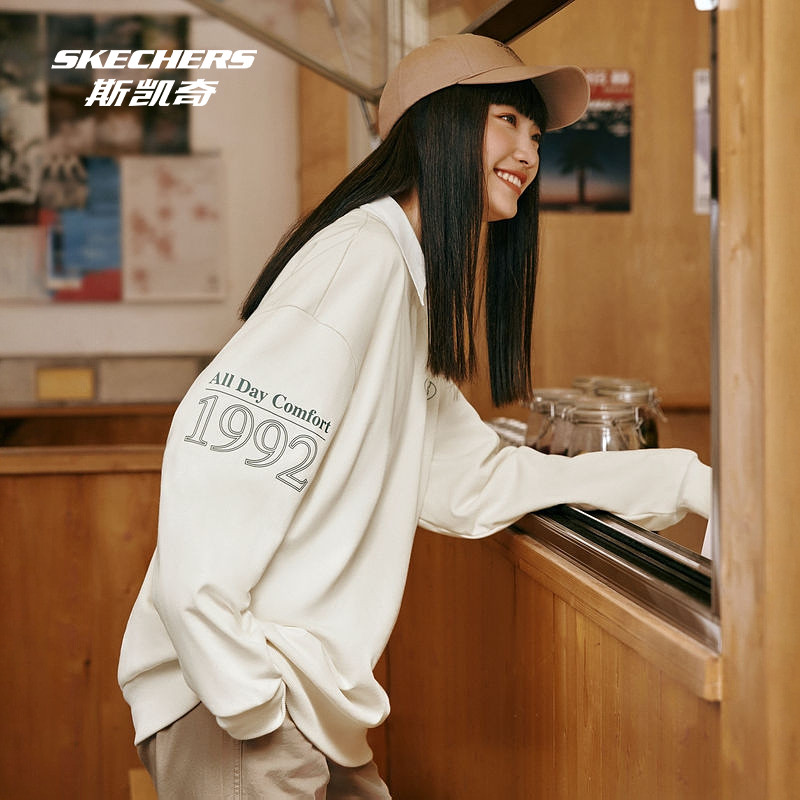 📚 斯凯奇男女款情侣款卫衣加绒白色圆领舒适宽松百搭上衣时尚运动服