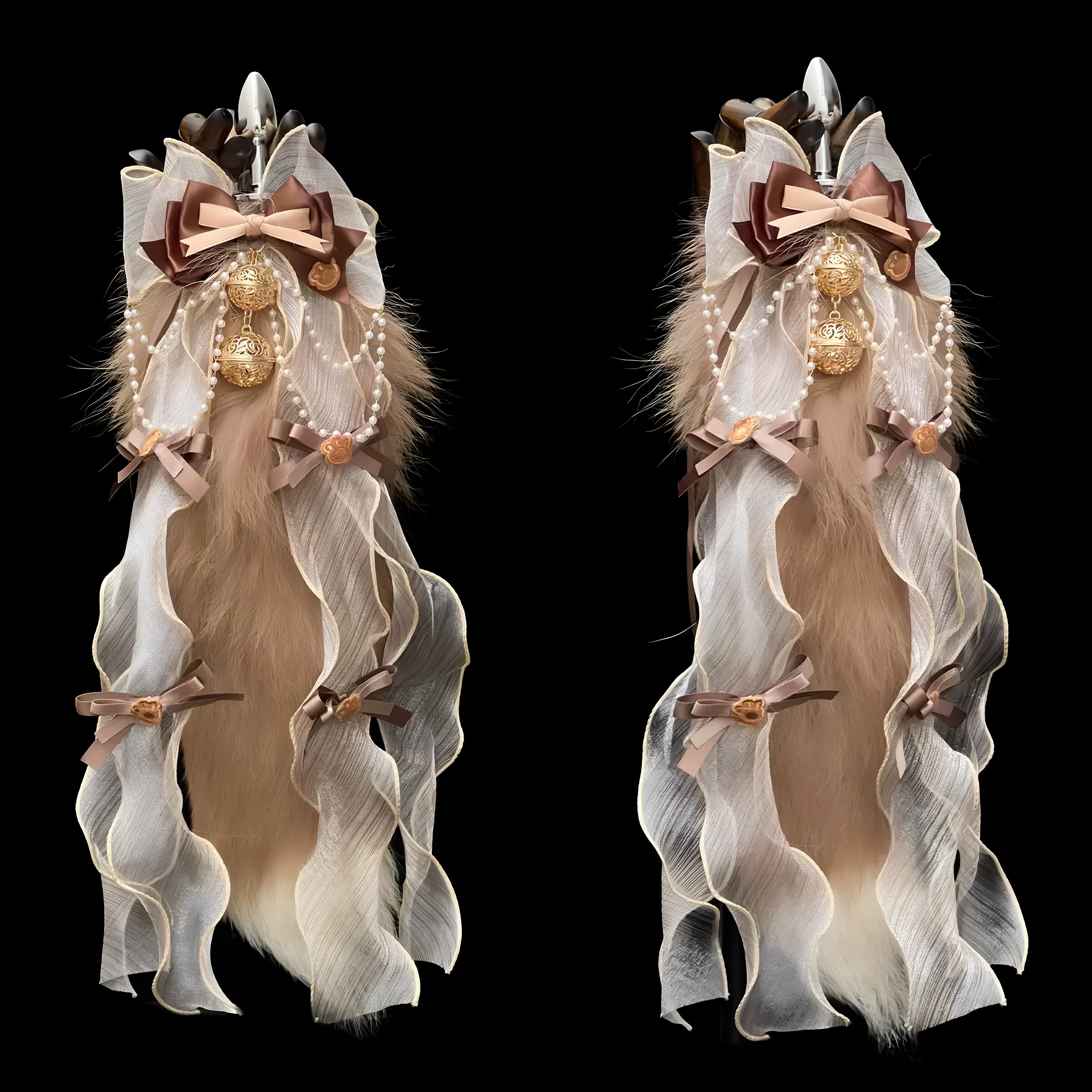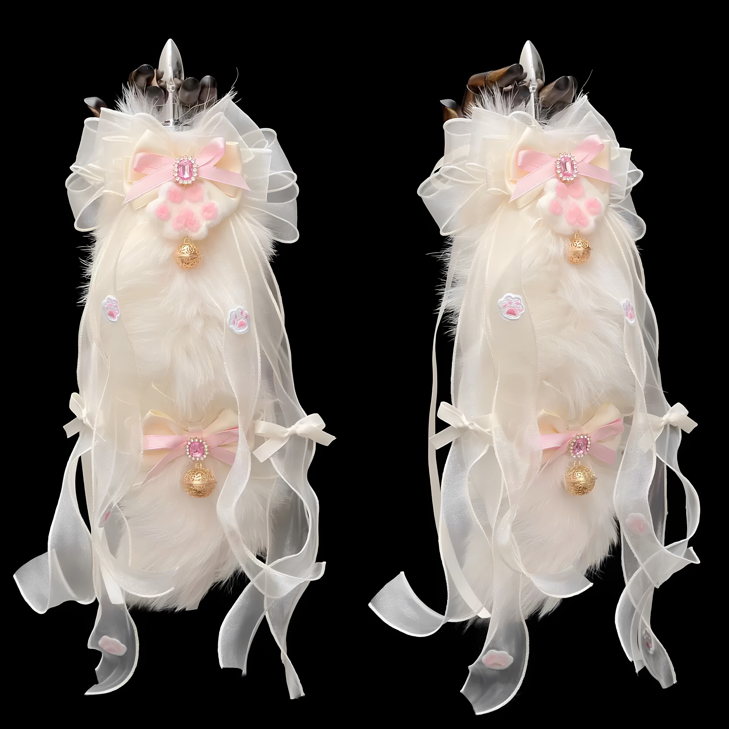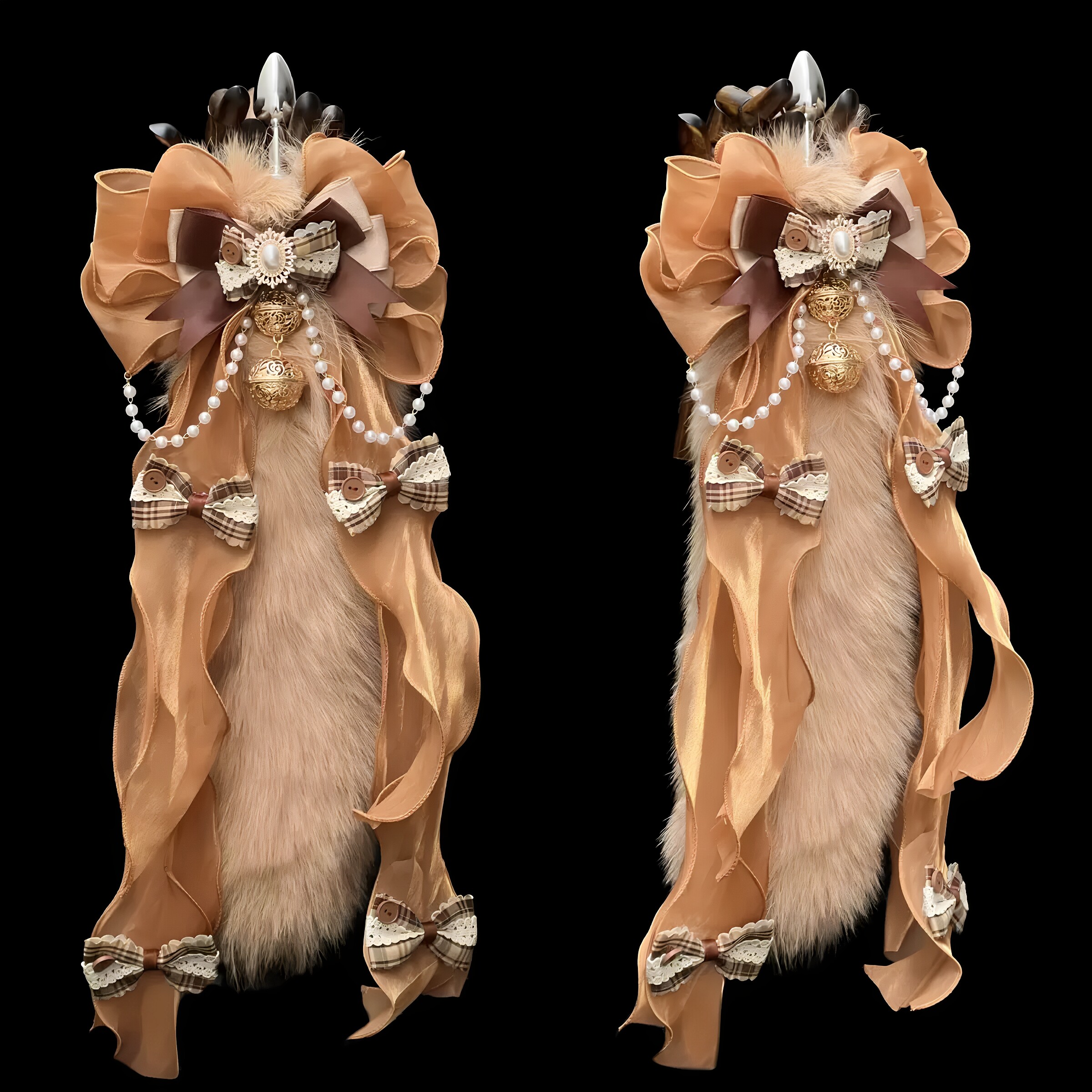 📚 灼欲*二次元穿戴狐狸真毛绒尾巴缸塞蝴蝶结cosplay道具铃铛饰品