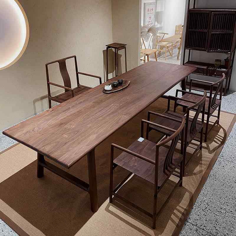 💥新中式北美黑胡桃木大板茶桌,宋式美学办公室会议桌,实木家具!券后价618.5就入手吧💥