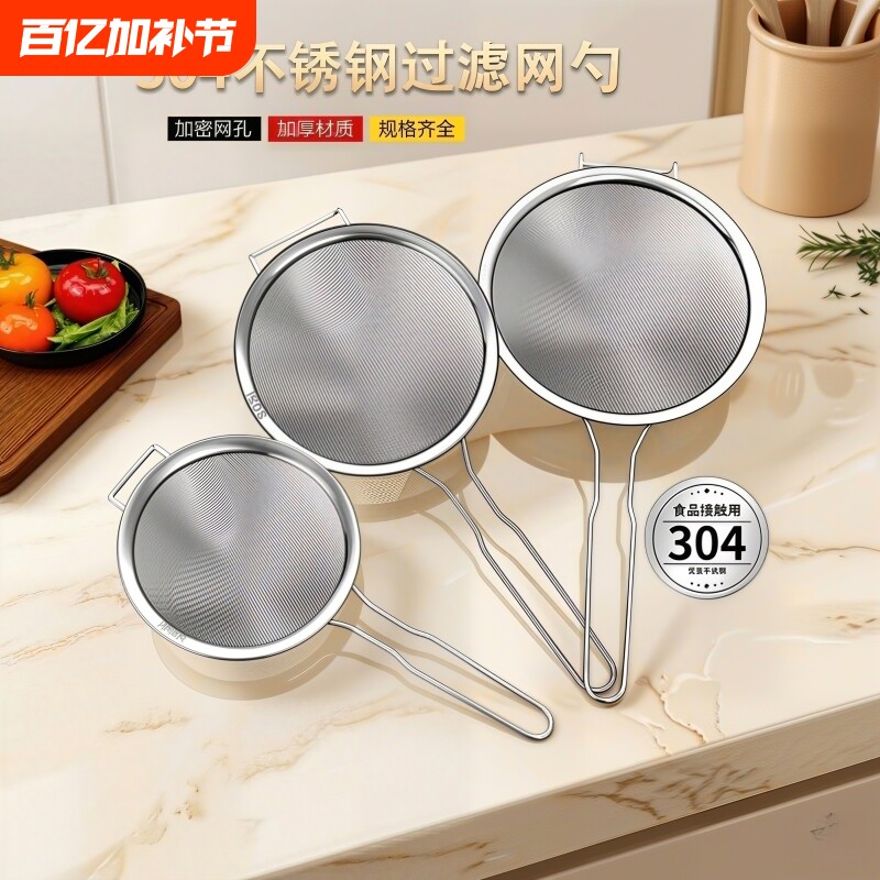 📚 漏勺不锈钢304食品级多功能家用一体成型过滤网细孔捞勺密漏网大