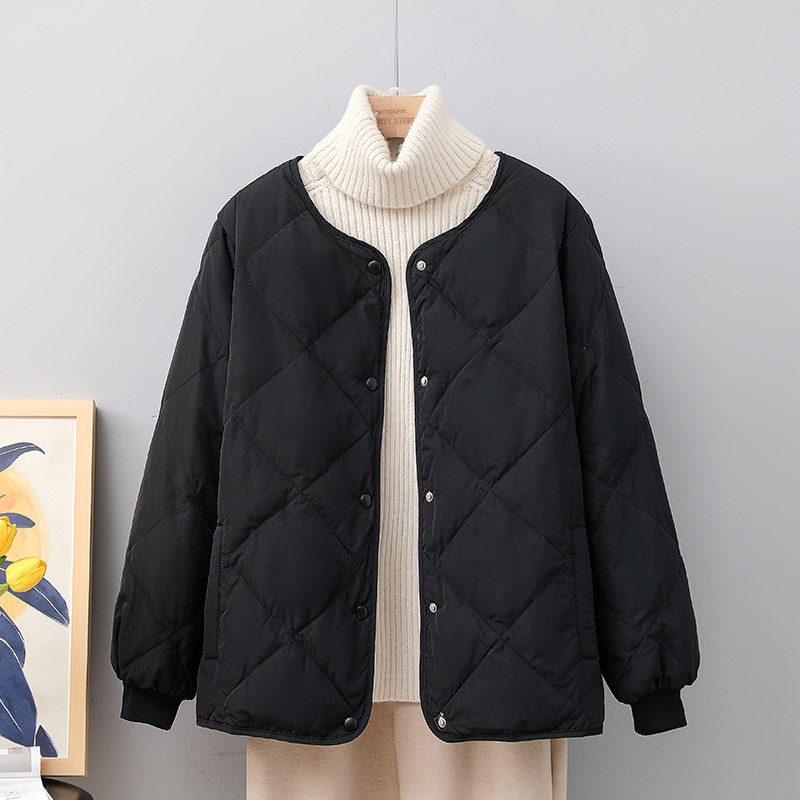 #短款羽绒服 #女圆领 #冬季新品 #轻薄女款 #宽松菱格 #无领内胆外套