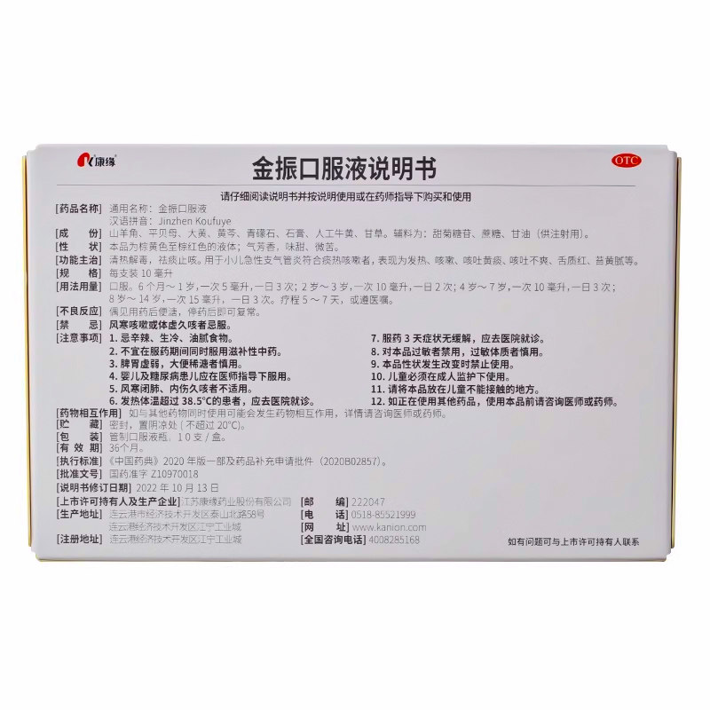 📚 康缘金振口服液10ml*10支 用于小儿急性支气管炎