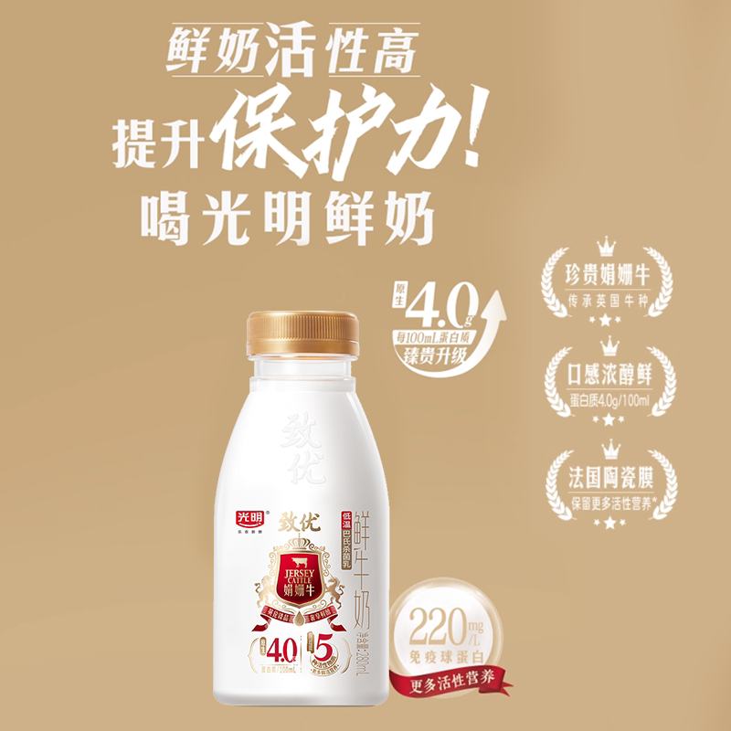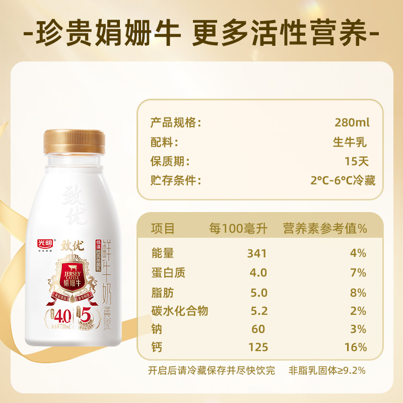 📚 【入会领券更优惠】光明致优娟姗高品质鲜牛奶280ml*8瓶 珍贵奶源