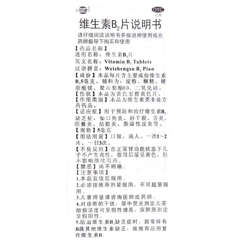 📚 恒健维生素B2片5mg*1000片/瓶口腔溃疡国药准字官方旗舰店正品