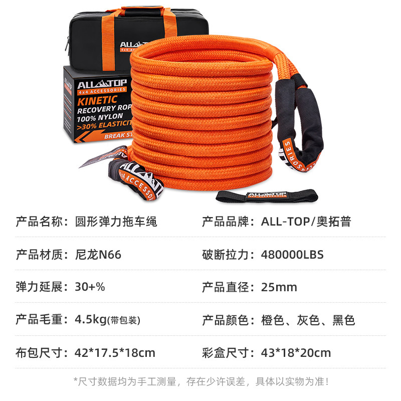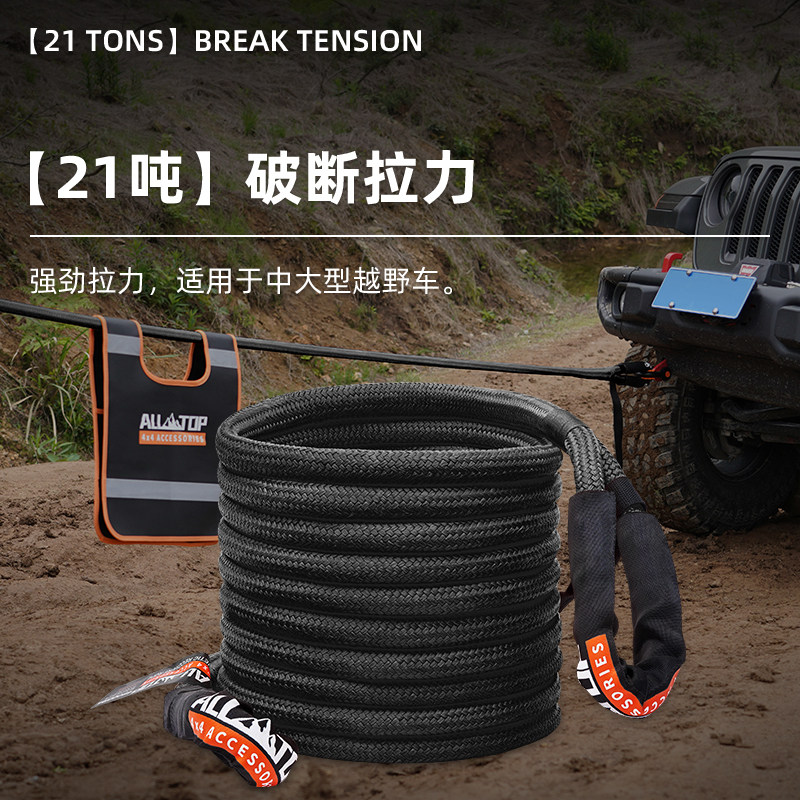 📚 ALLTOP/奥拓普高强21吨尼龙弹力拖车绳越野汽车专用救援牵引脱困