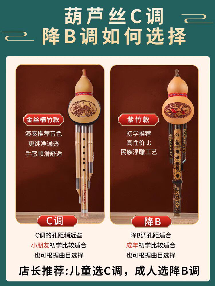 📚 葫芦丝乐器初学者C调降B调F调防摔儿童小学生专用七孔紫竹胡葫丝