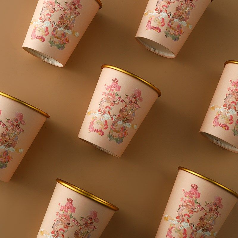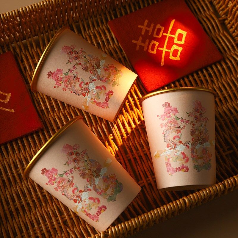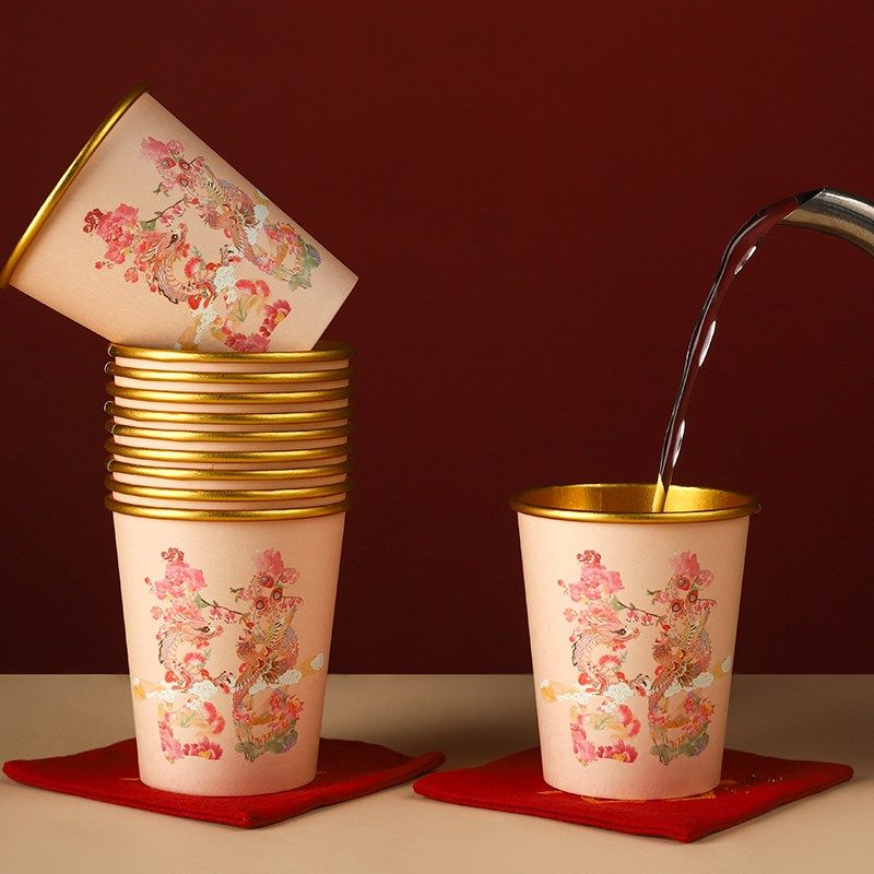 📚 结婚金箔杯一次性纸杯敬茶敬酒婚礼宴席加厚喜杯子高级感婚庆用品