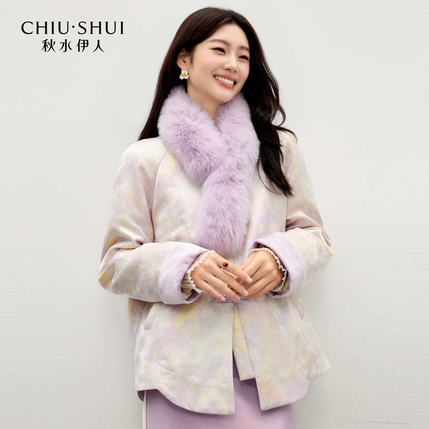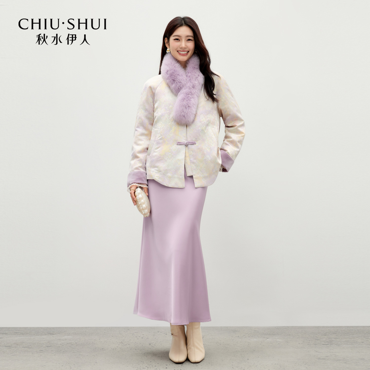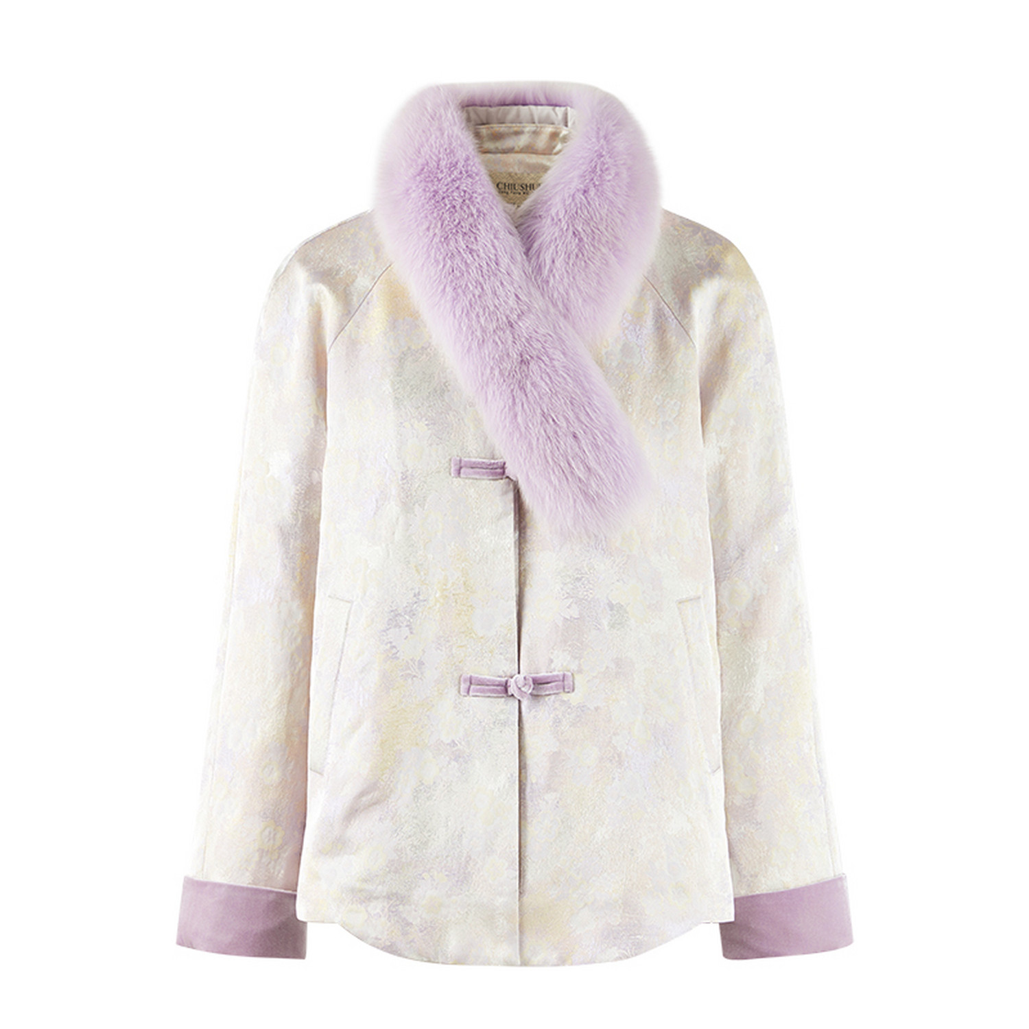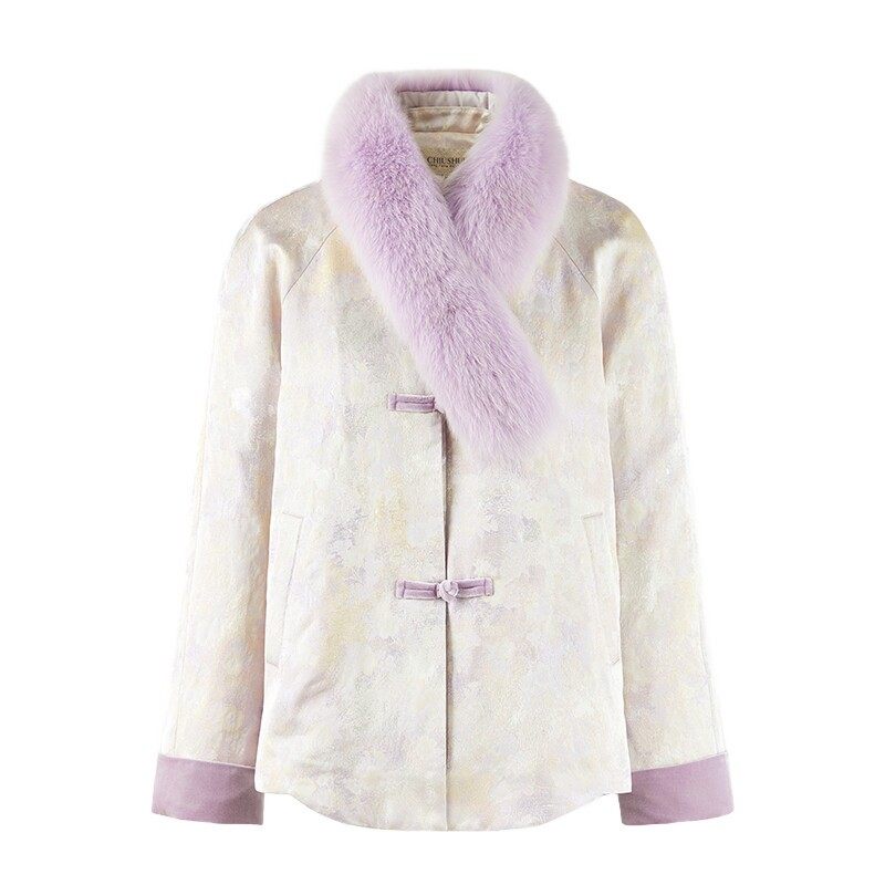 📚 秋水伊人温婉气质撞色毛领羽绒服2025年冬季新款复古国风提花外套