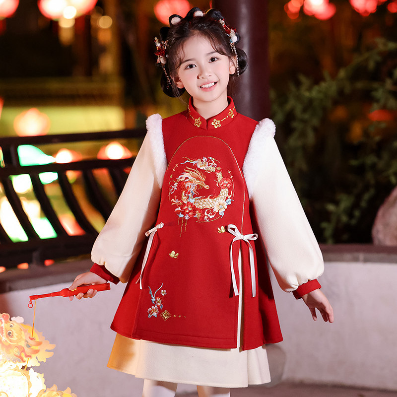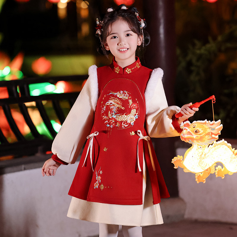 📚 女童拜年服连衣裙冬季加绒2026新款中国风冬裙儿童汉服公主裙冬款