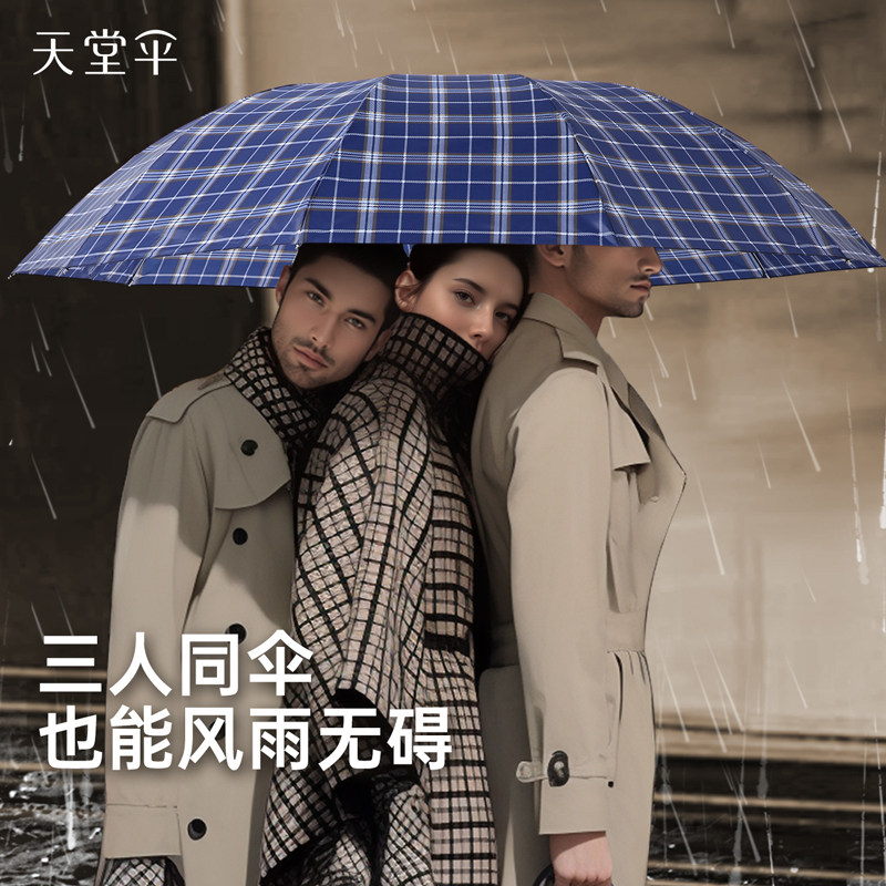 📚 天堂伞10骨三人加大伞加固厚英伦风折叠便携格子晴雨伞两用男女士
