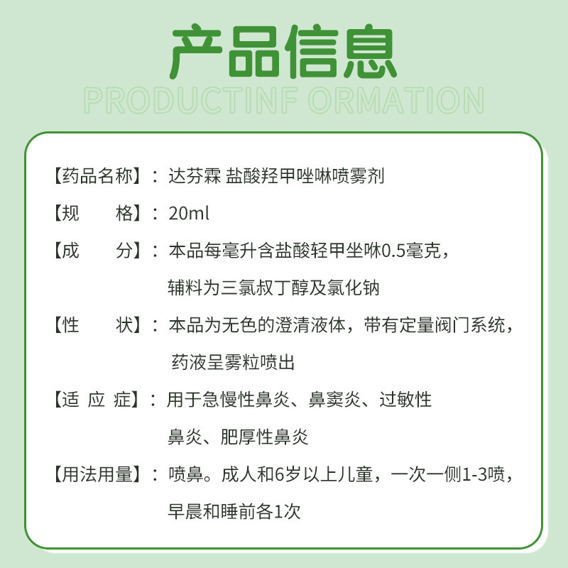 📚 达芬霖盐酸羟甲唑啉喷雾剂20ml鼻炎喷雾过敏性鼻炎鼻塞急慢性喷剂