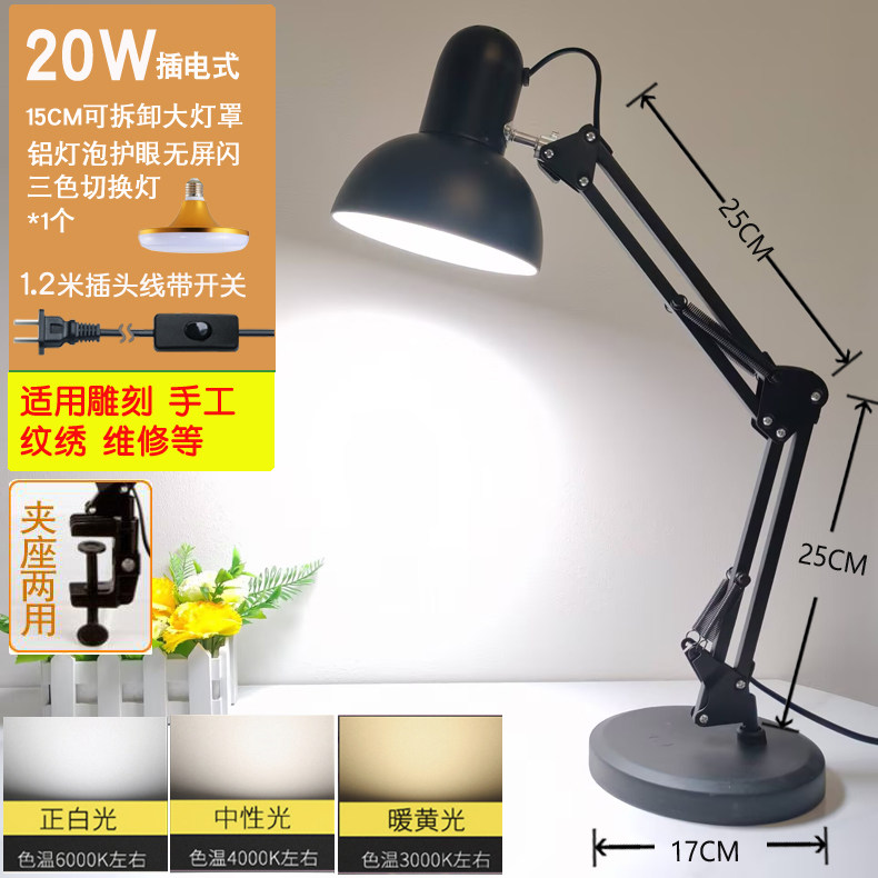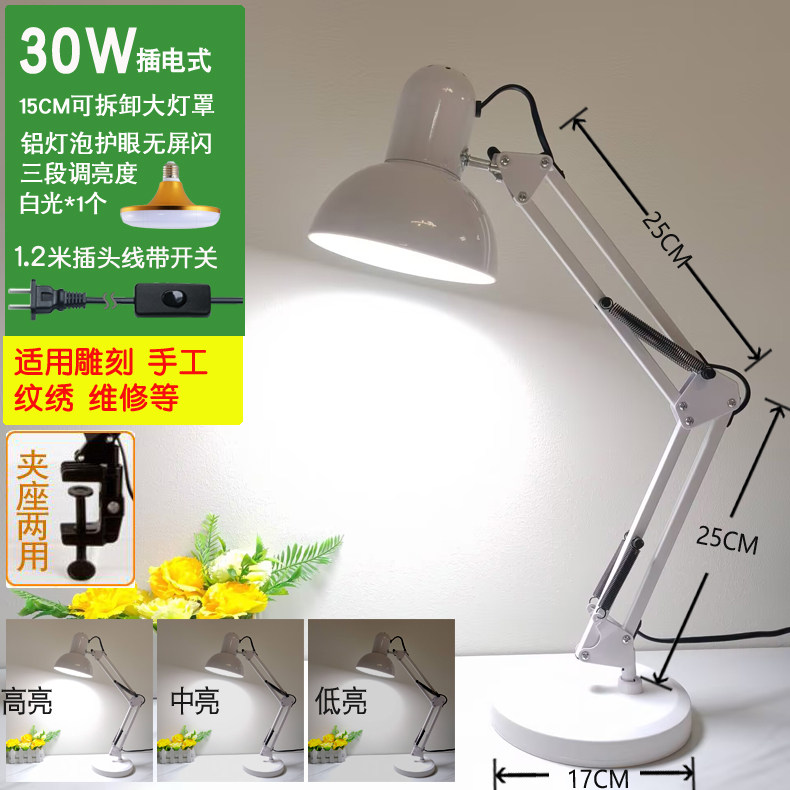 📚 LED护眼美甲折叠台灯电脑书桌办公床头普通螺口灯泡手工雕刻台灯