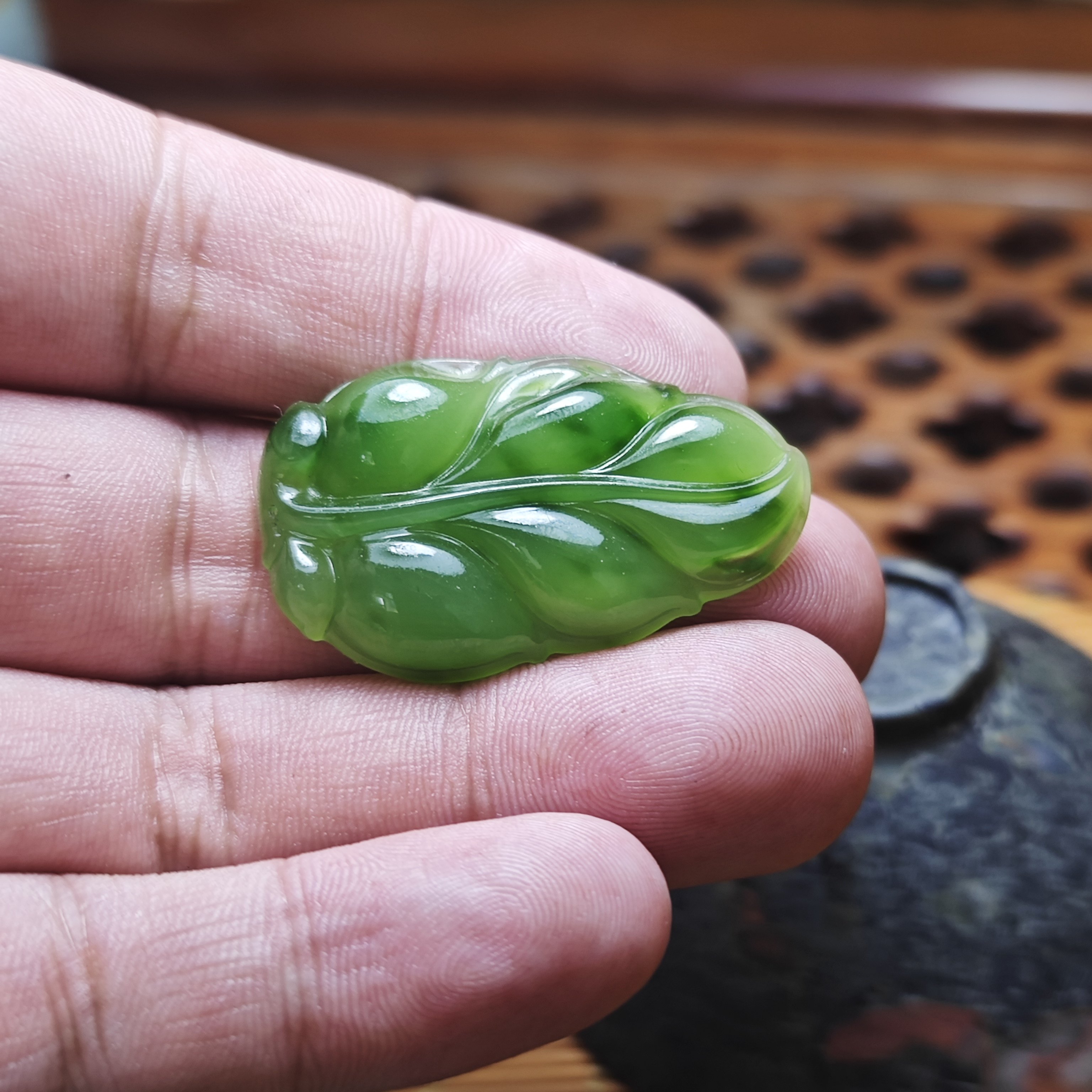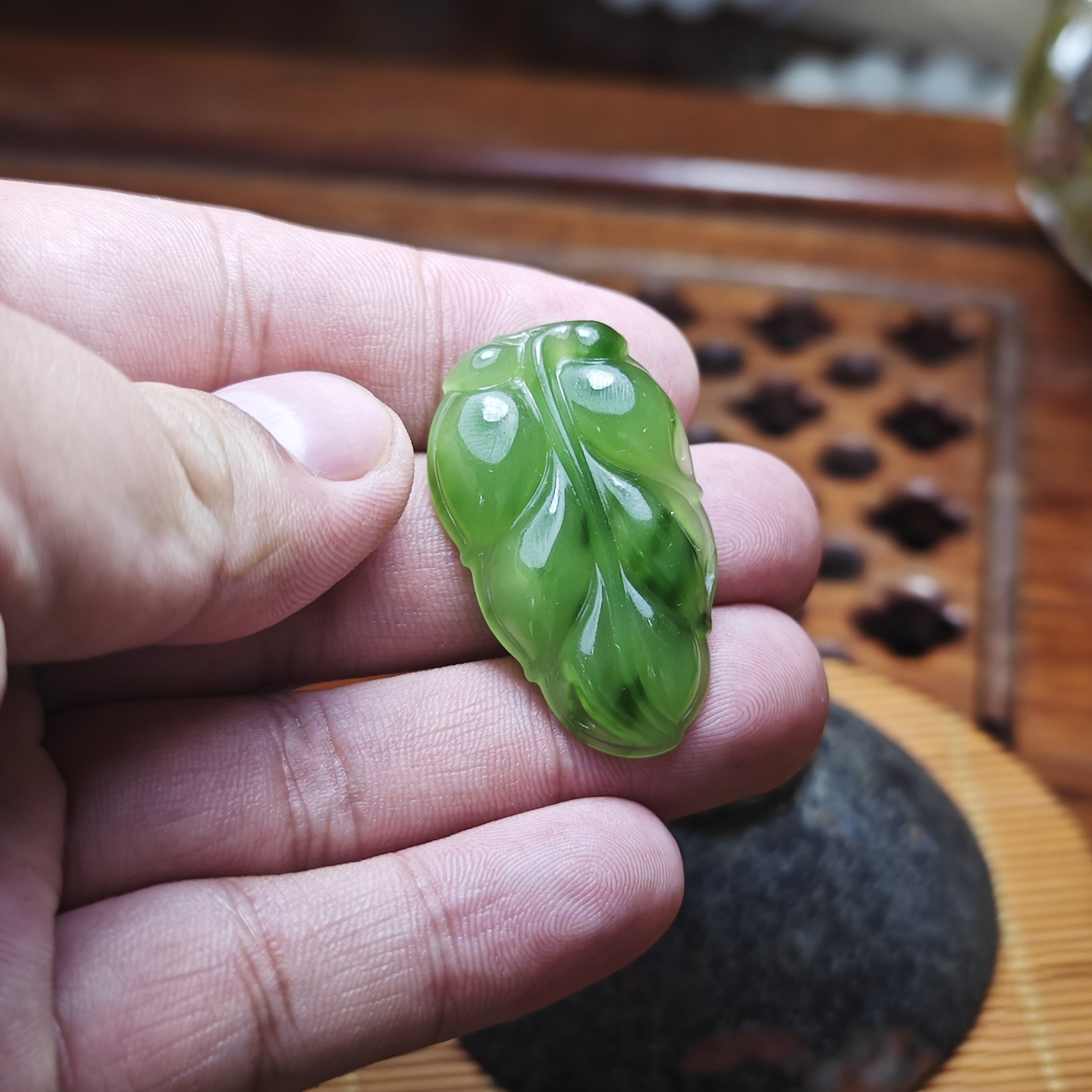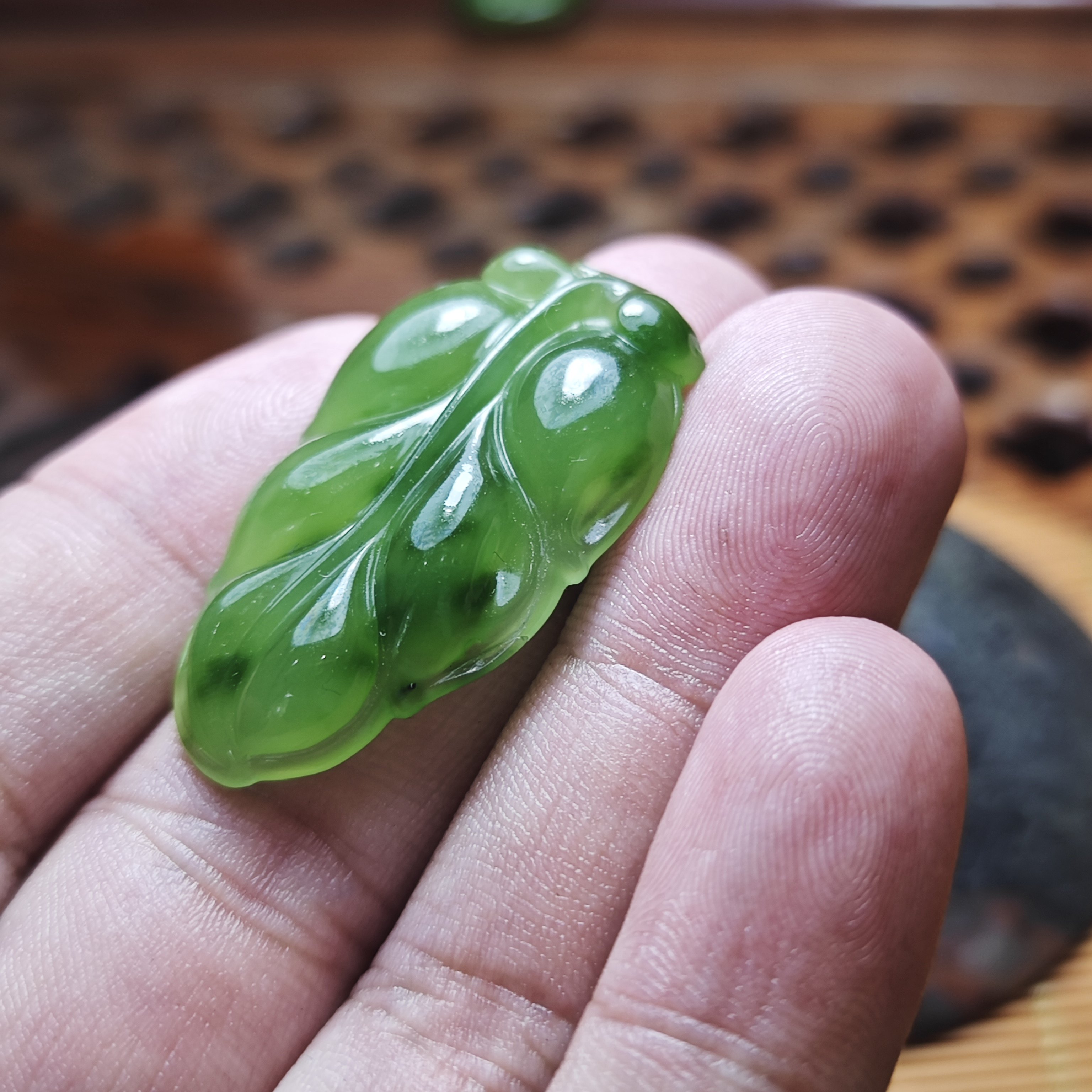 📚 新疆和田玉阳绿碧玉金枝玉叶树叶吊坠冰种老坑冰透饰品女款翠色