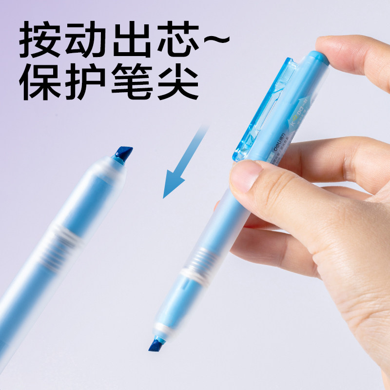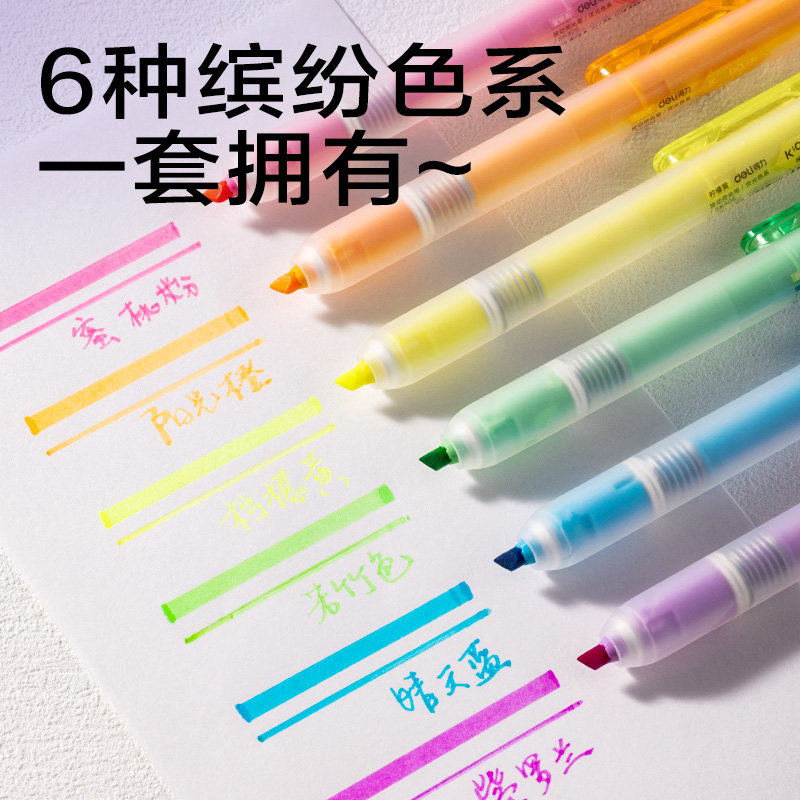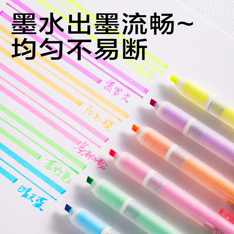 📚 得力按动荧光笔划重点随心创意手账标记绘图彩色记号笔学生标记笔高颜值记重点笔彩色缤纷荧光标记笔学生用