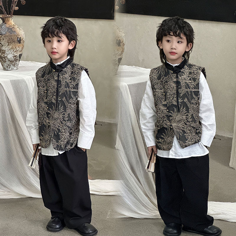 📚 男童新中式小主持人服装儿童马甲西装套装男孩中山装演讲比赛礼服
