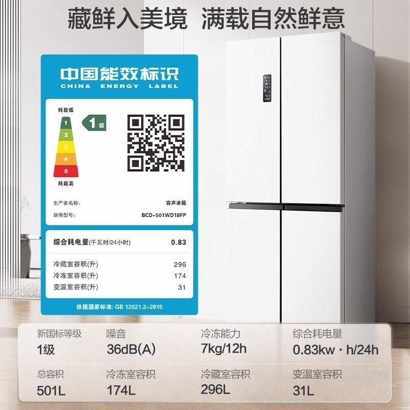 📚 Ronshen/容声 BCD- 501WD18FP多门四开门一级变频风冷双系统冰箱