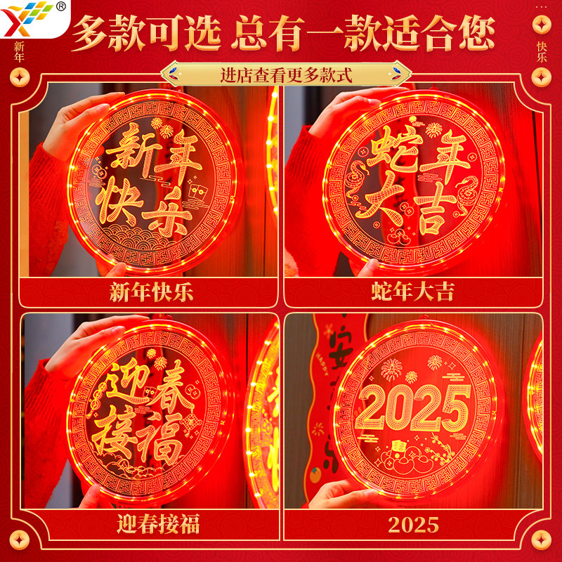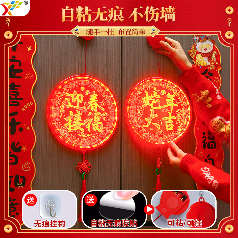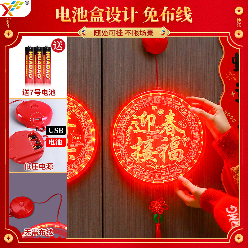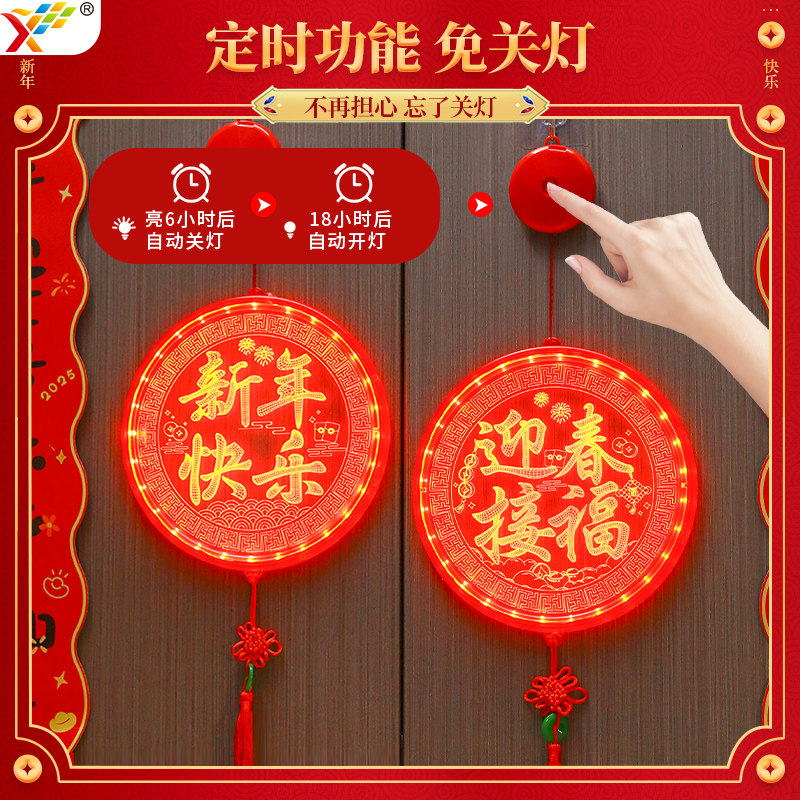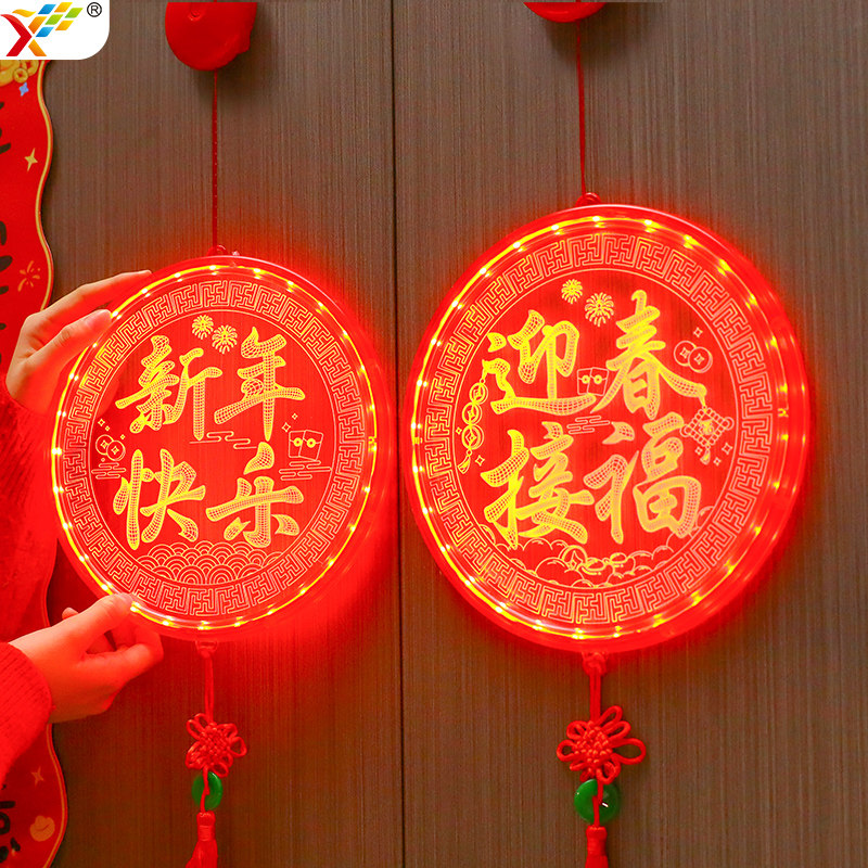 📚 迎春接福福字中国结LED亚克力挂件2026新年卧室门上马年氛围装饰