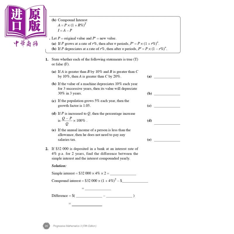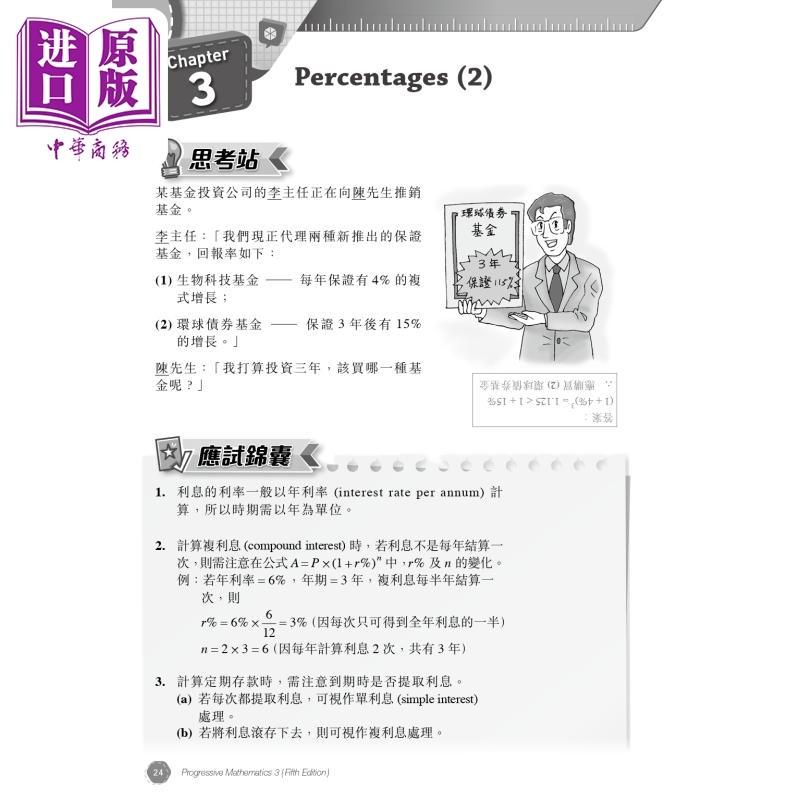 📚 预售 Progressive Mathematics 3 Fifth Edition 进步数学3 第五版 香港教育图书出版 港台原版 初中中学应试练习册【中商原版】