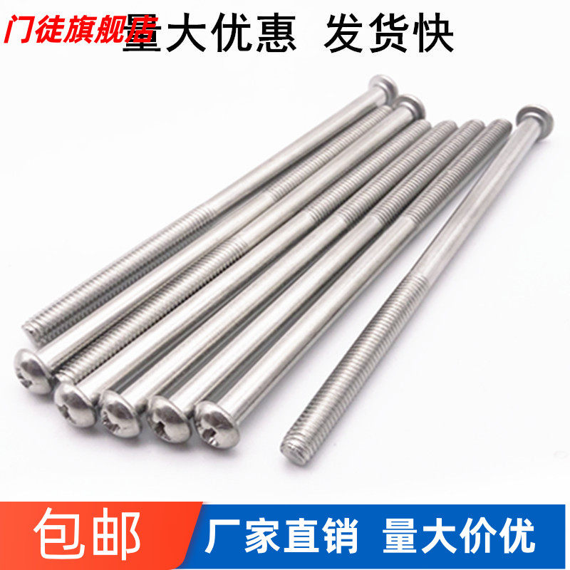 📚 不锈钢半牙十字圆头螺丝钉加长盘头长螺丝杆半丝螺钉M3M4M5X60100