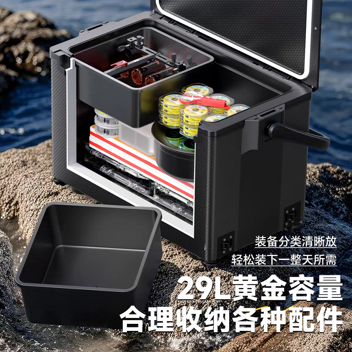 📚 连球钓箱新款升级双炮台180°双拐角更坚硬聚氨酯发泡黑武士29升