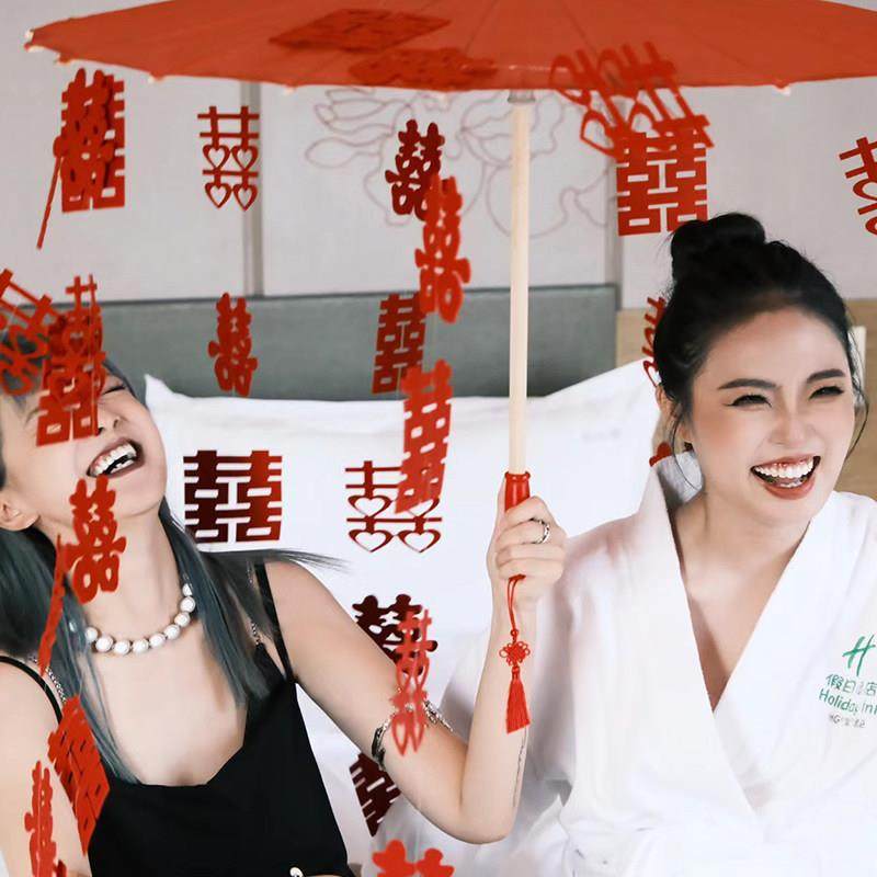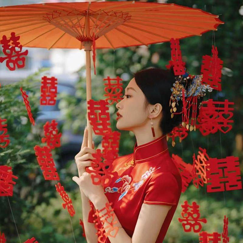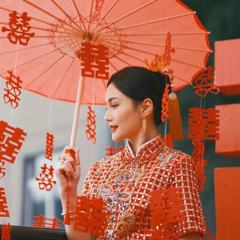 📚 红伞结婚新娘伞婚礼伞红色出嫁雨伞中式古风迎亲接亲伞新娘喜雨伞