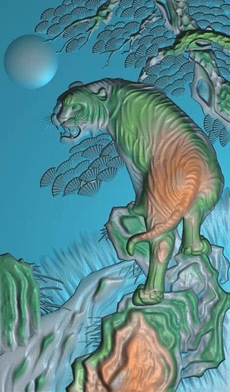 📚 精雕图老虎 上山虎243 动物东阳木雕工艺品挂屏手工雕刻扫描精雕