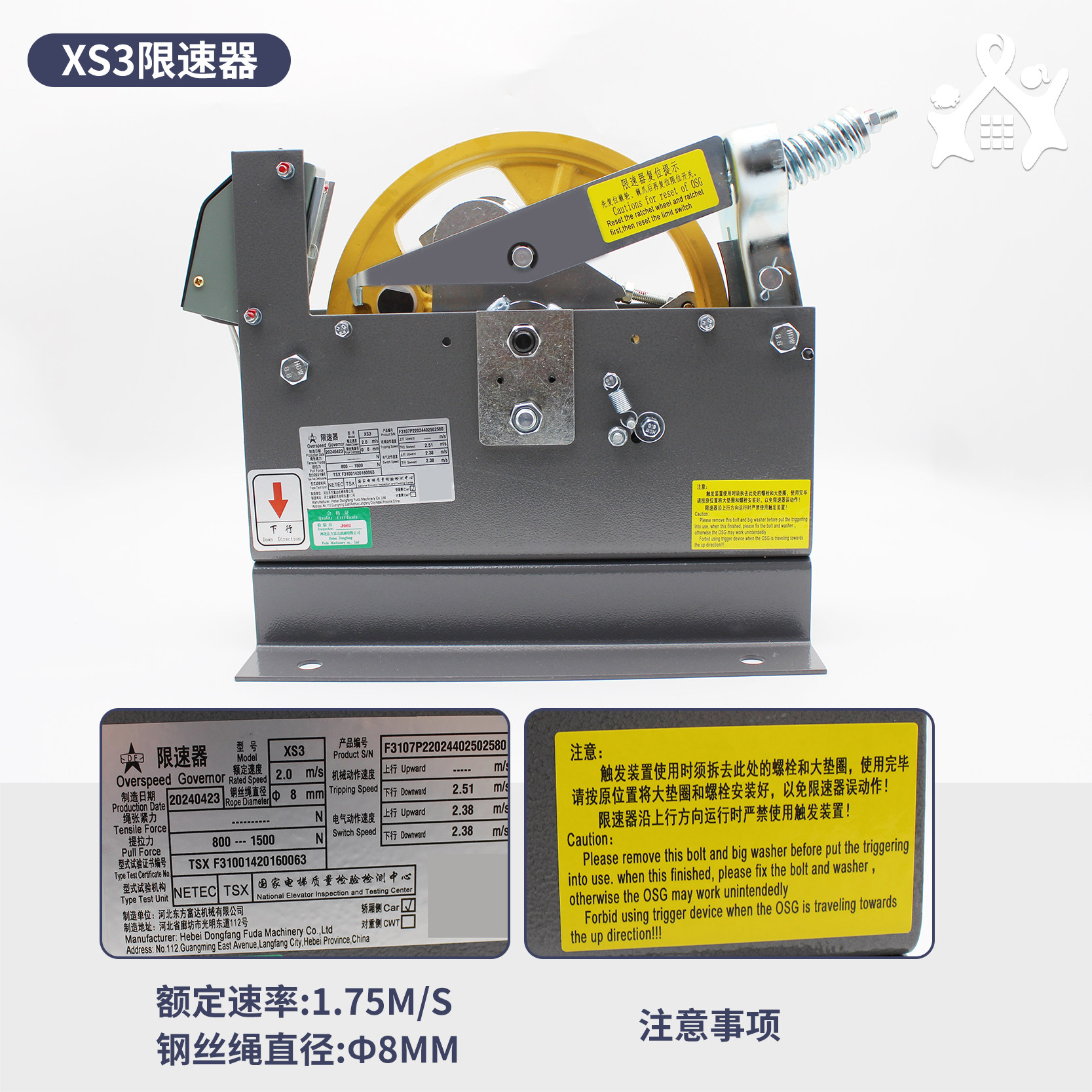 📚 河北东方富达电梯限速器XS3/XS3-B C适用蒂森通力永大广日博林特