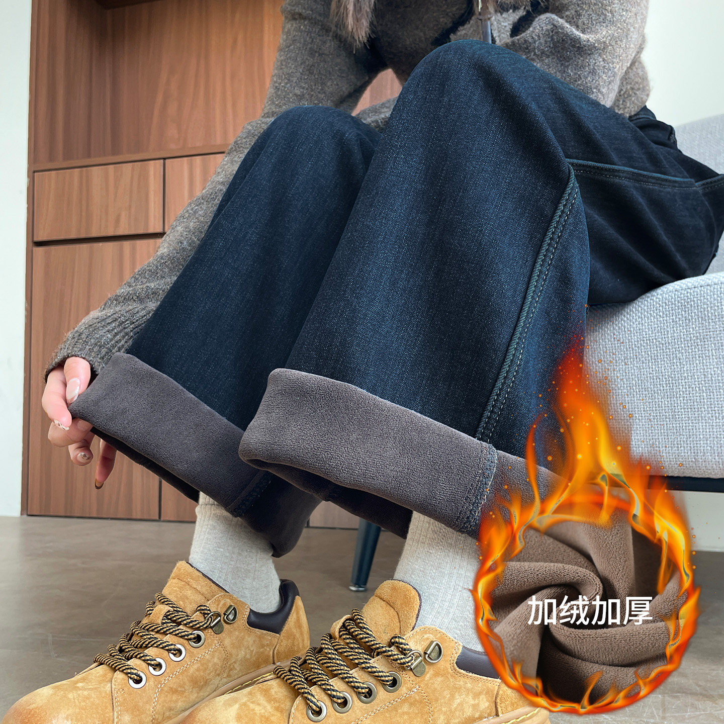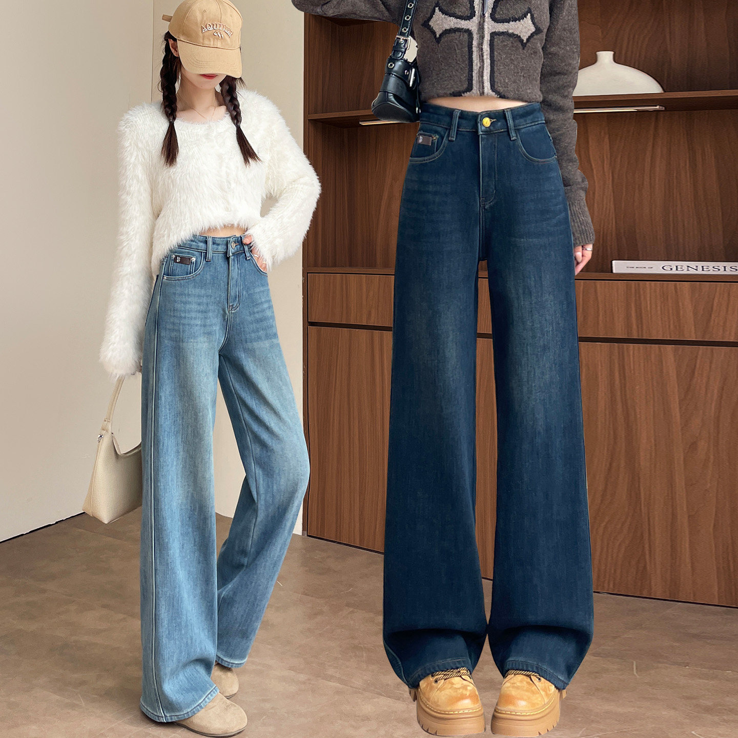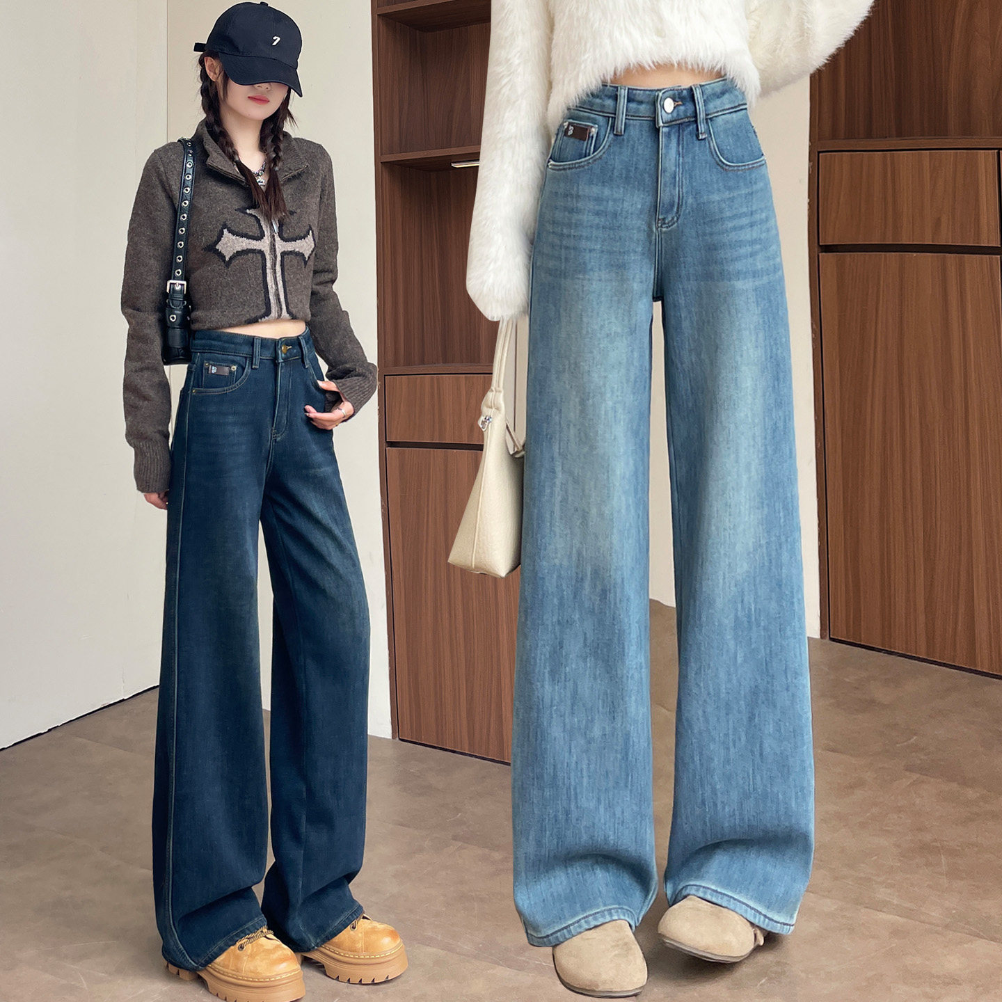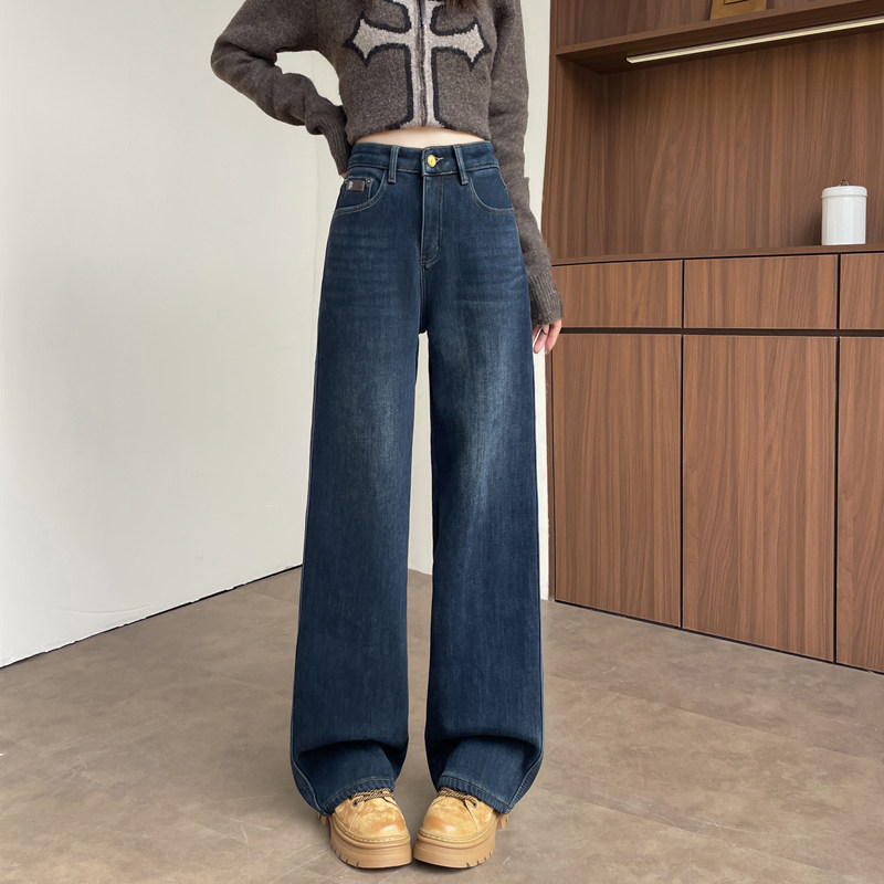 📚 复古加绒阔腿牛仔裤女2025新款冬季高腰显瘦小个子窄版加厚直筒裤