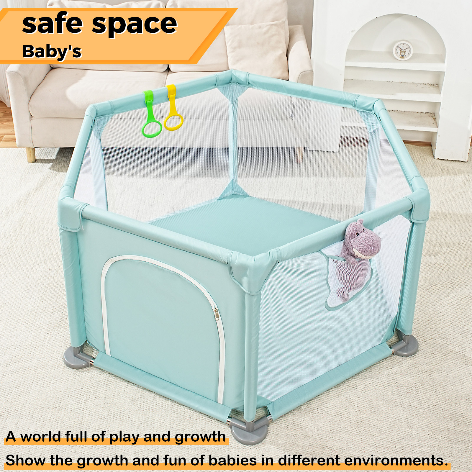 📚 儿童游戏围栏六角形婴儿护栏防护游乐园加高布艺自由安全可折叠