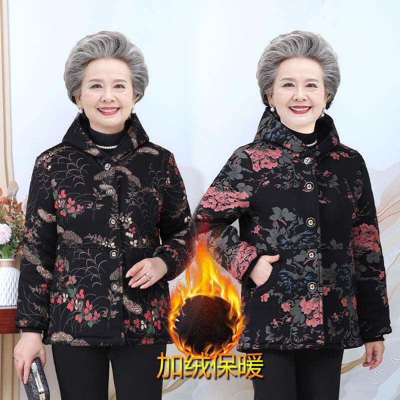 📚 m5冬天年加绒短款老奶奶棉服中老妈装棉衣女AFE妈保暖连帽3衫小棉