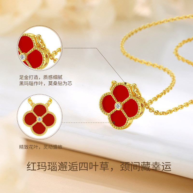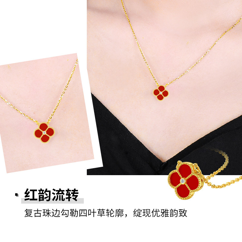📚 梦金园五花四叶草黄金项链女足金镶嵌锆石套链锁骨链正品生日礼物