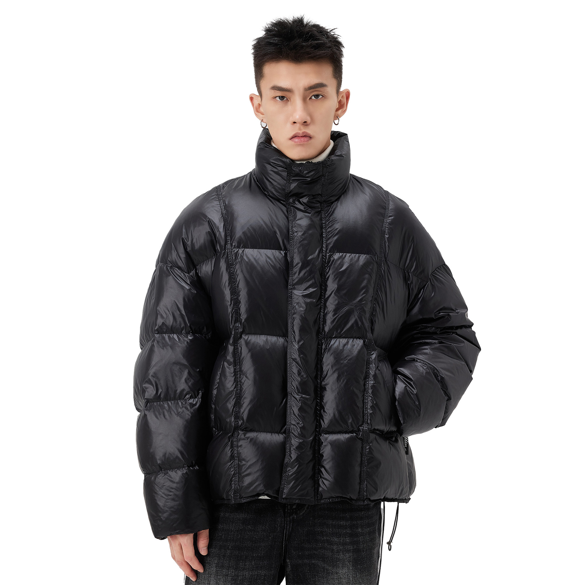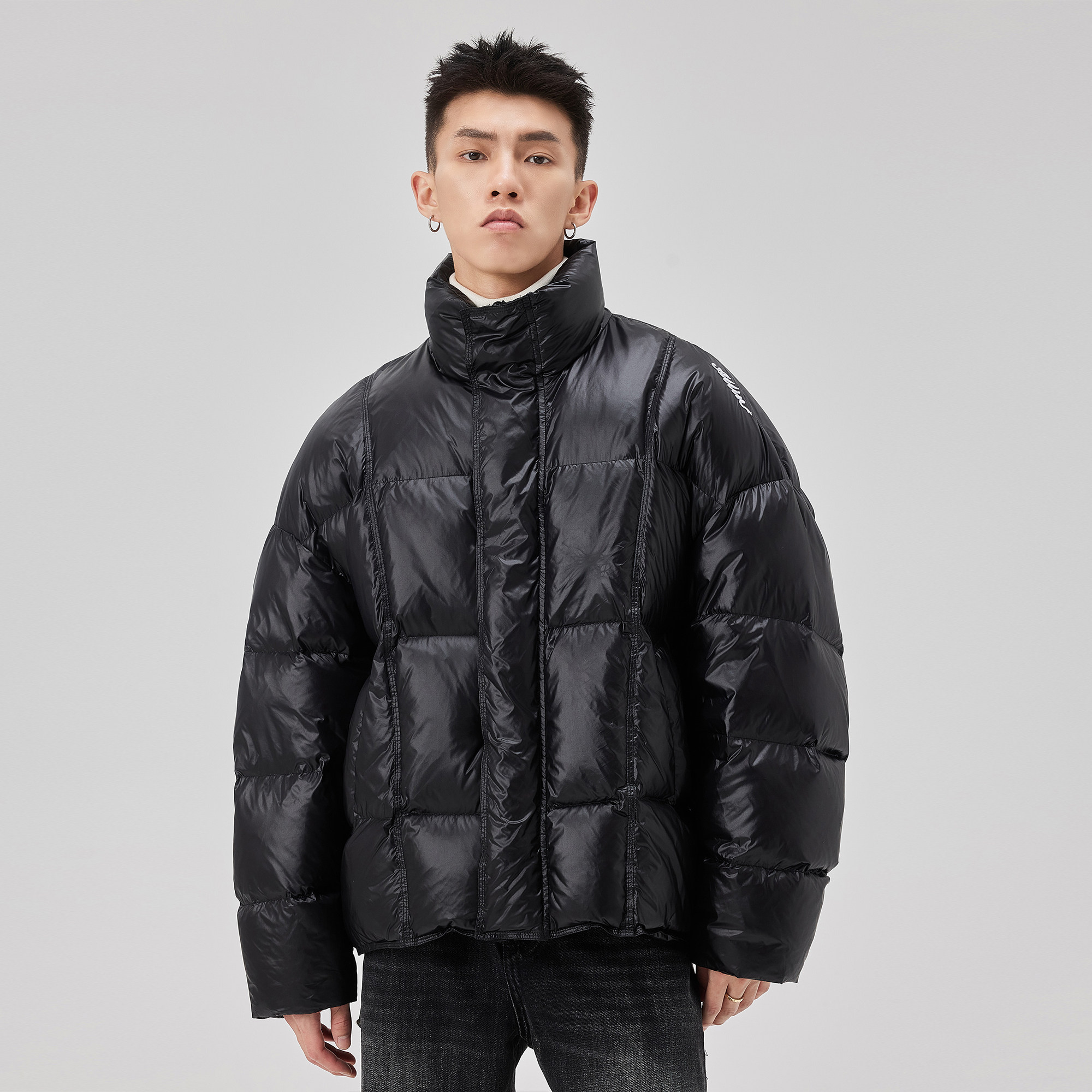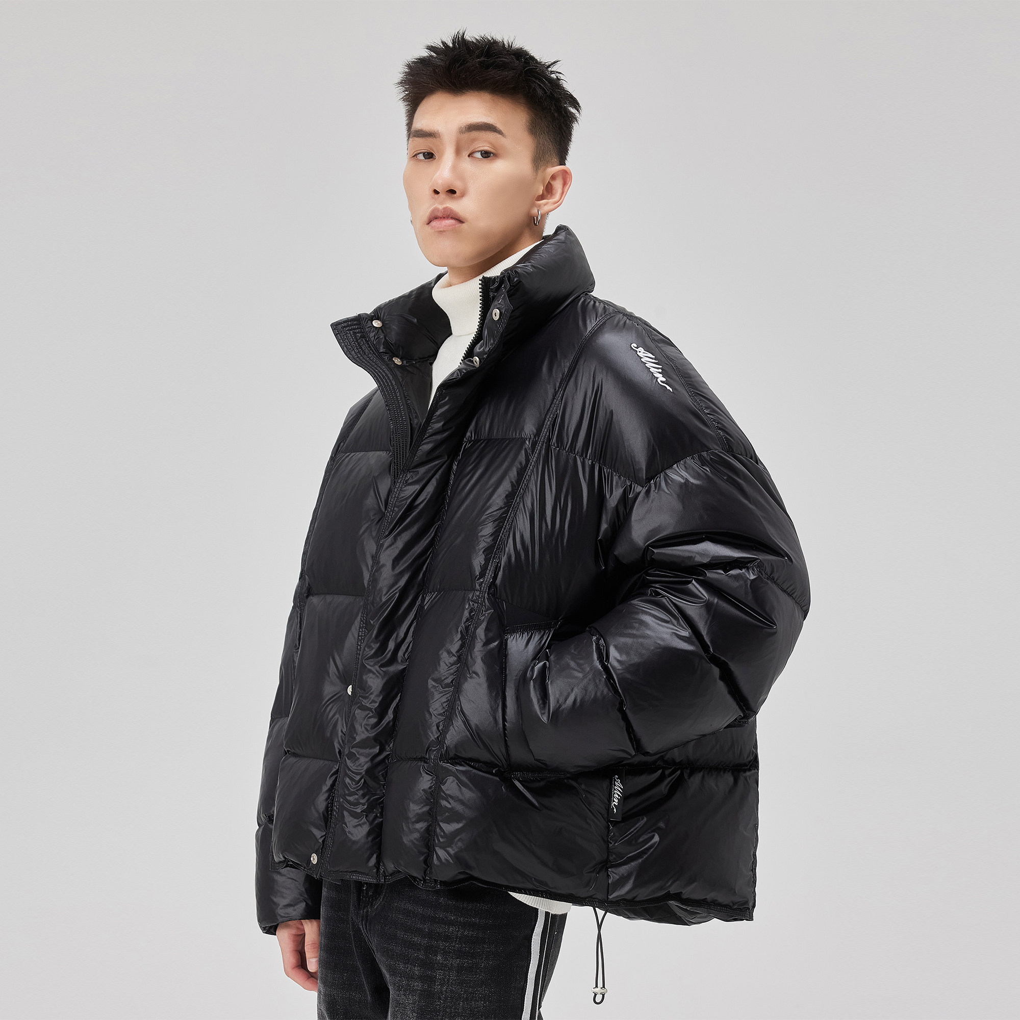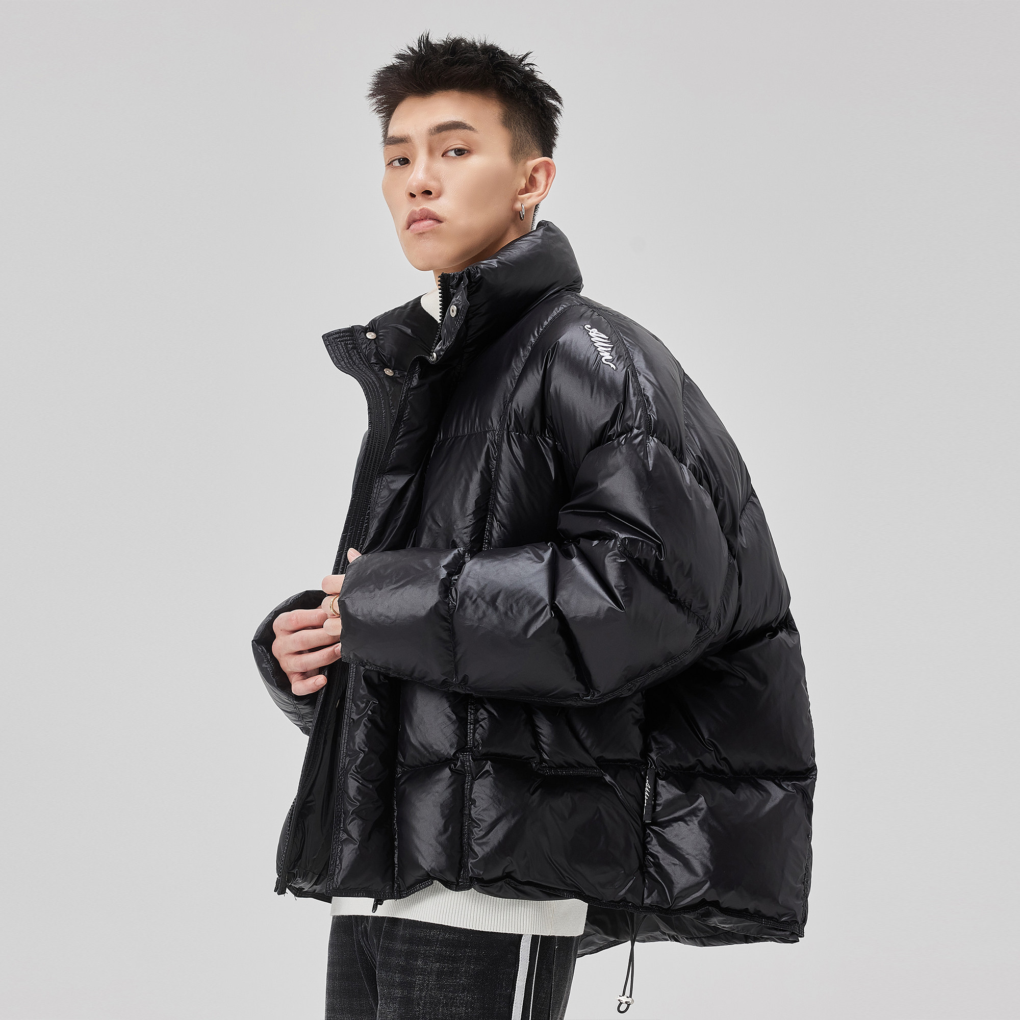 📚 ALLIN 黑色短款立领羽绒服男款冬季加厚保暖面包服高级感情侣外套