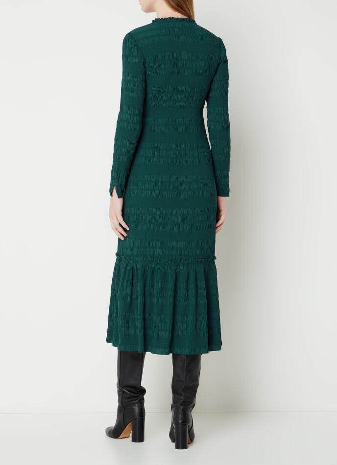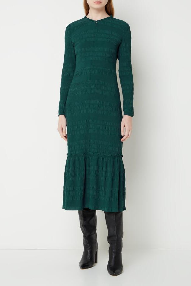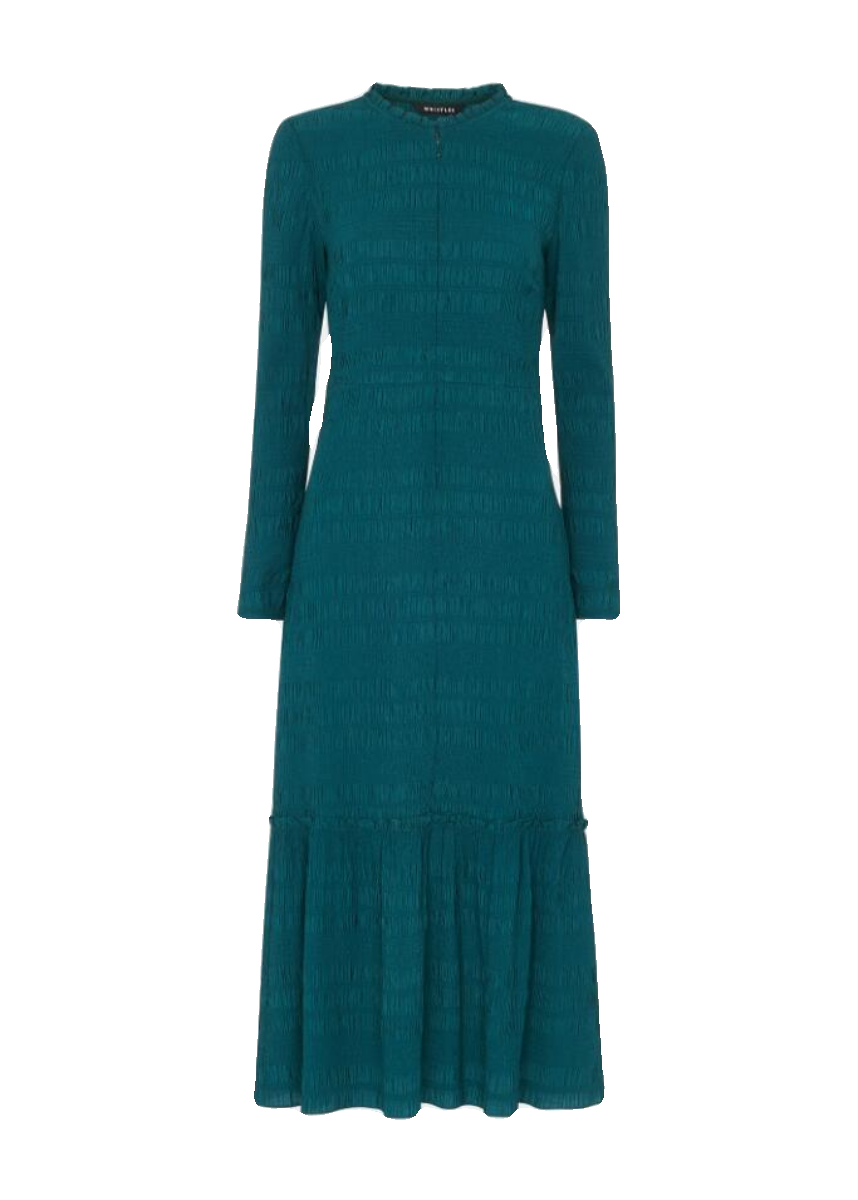 📚 WHISTLES长袖连衣裙中长款青绿色褶皱荷叶边优雅修身英伦百搭
