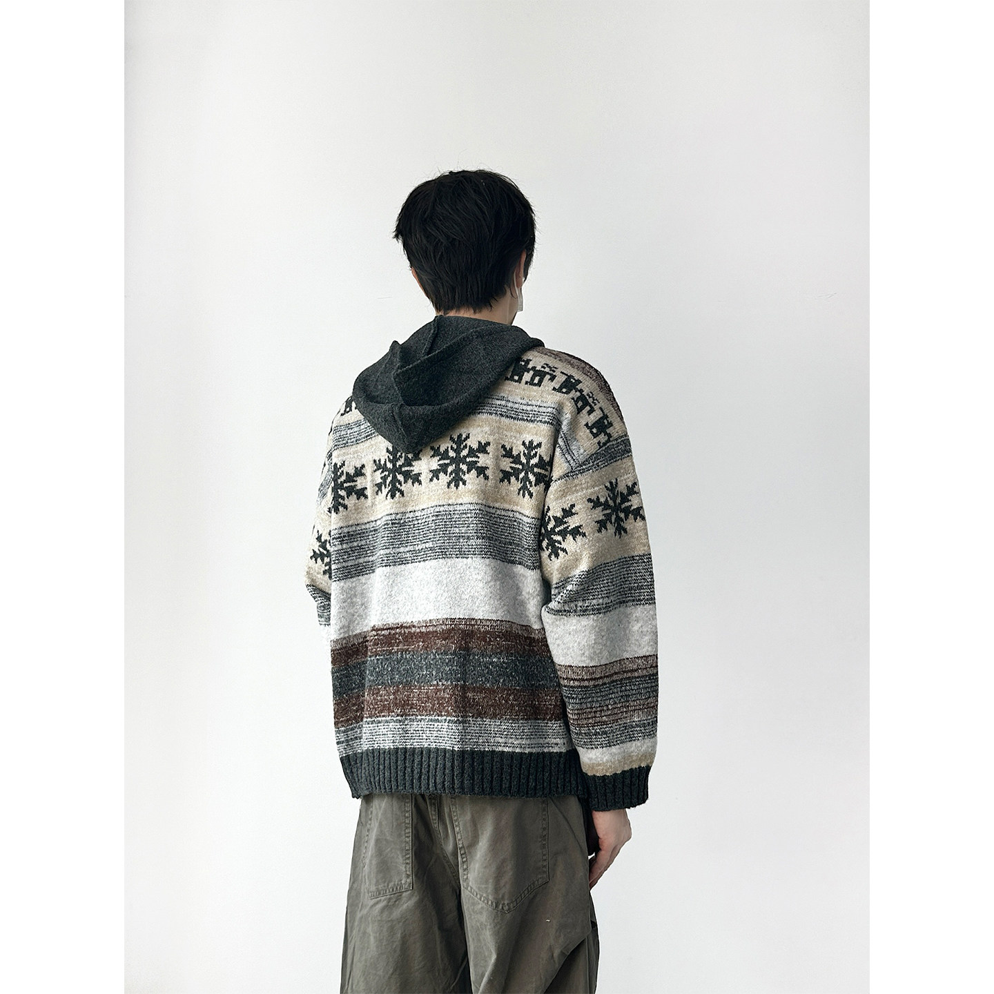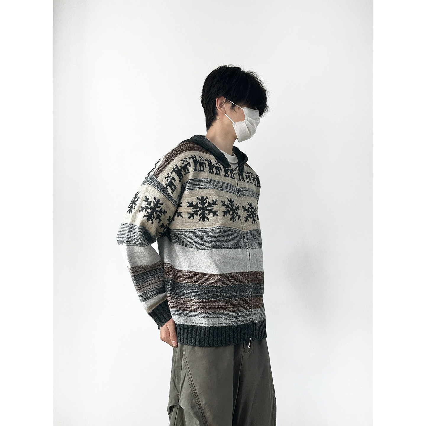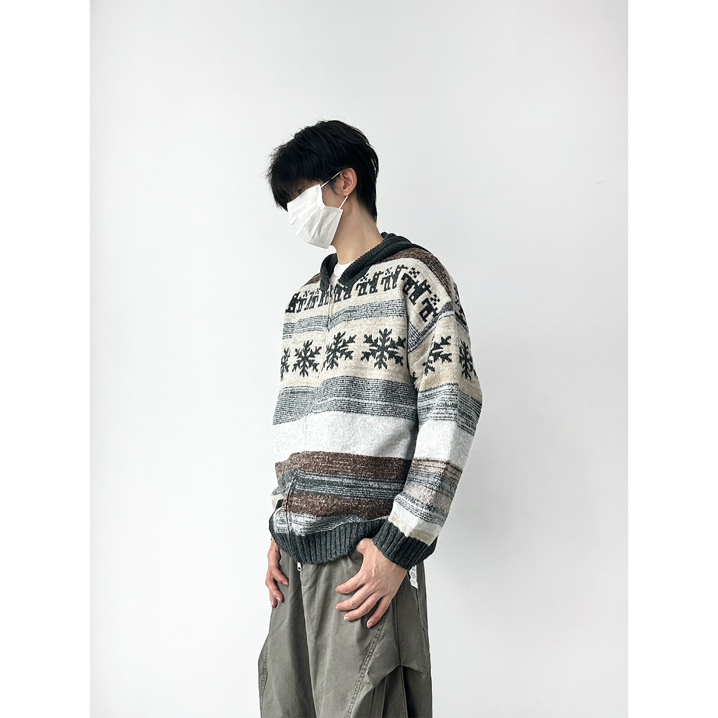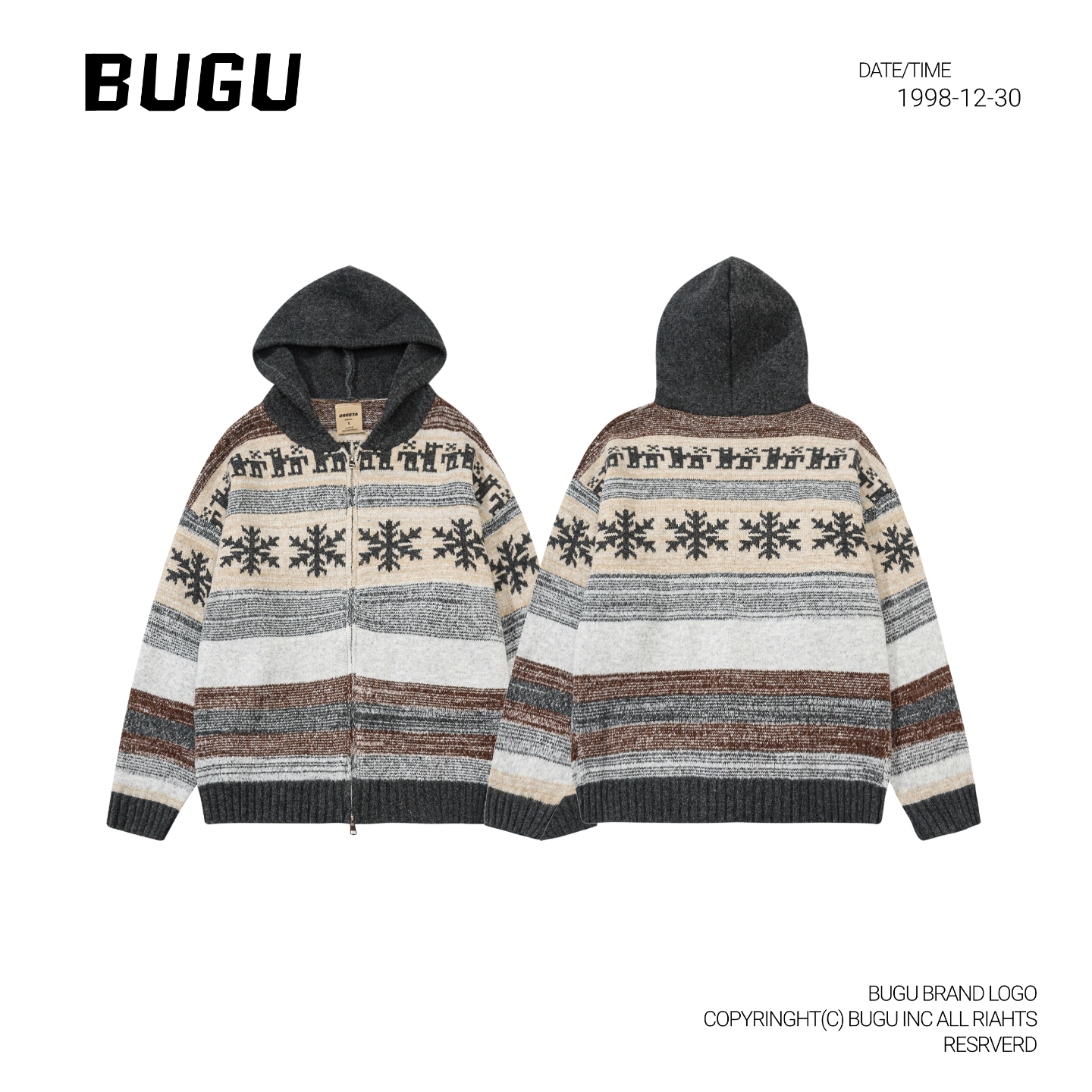 📚 落雪沙漠小鹿提花毛衣*BUGU*连帽拉链 宽松休闲版型 慵懒情侣外套