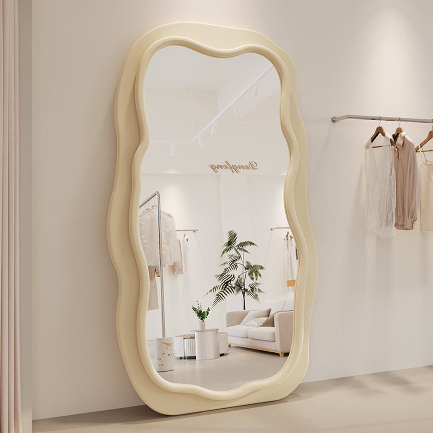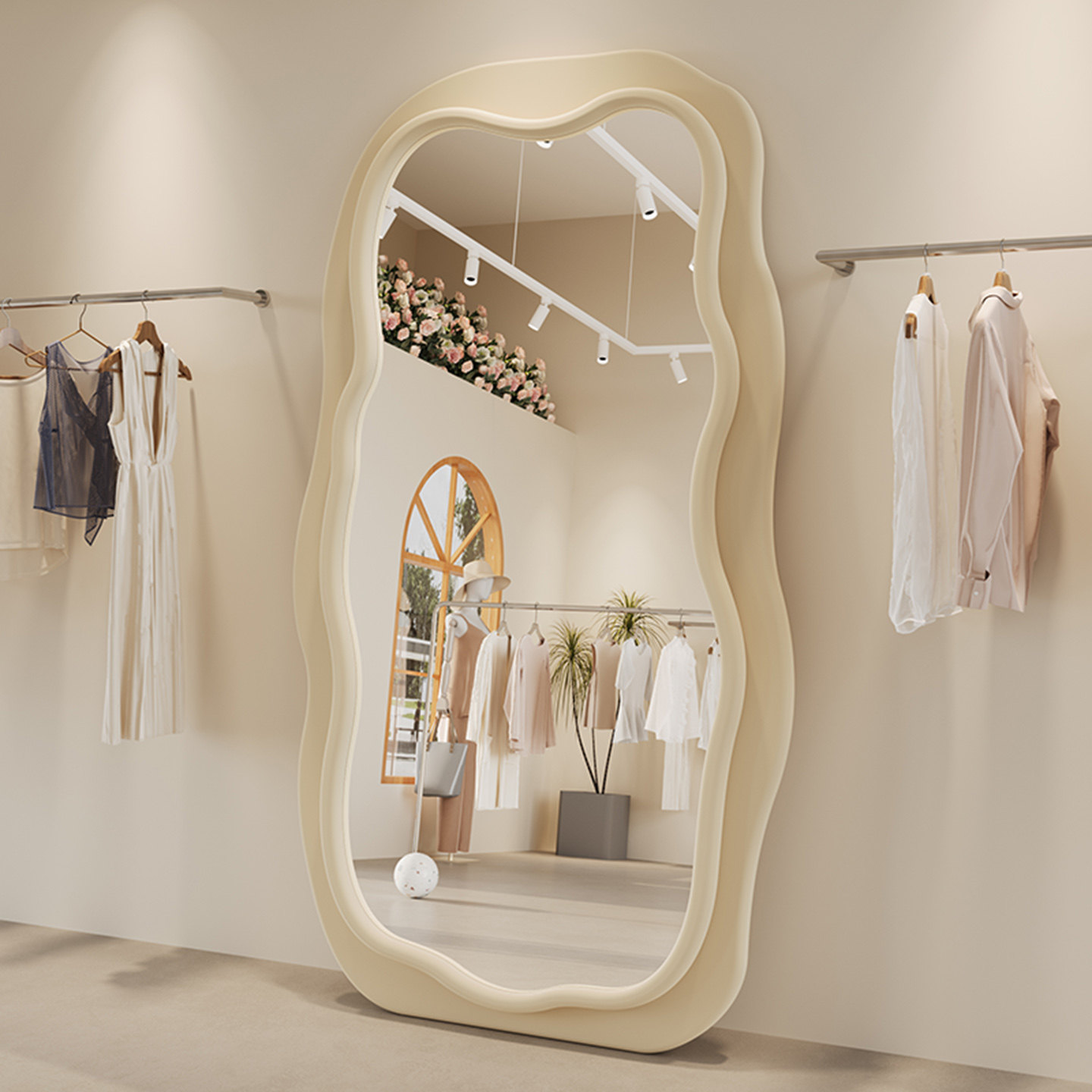 📚 异形镜子全身镜奶油风穿衣镜轻奢高级感服装店专用试衣镜显高显瘦