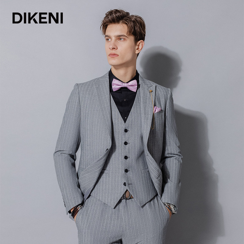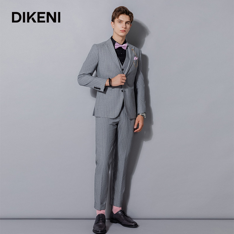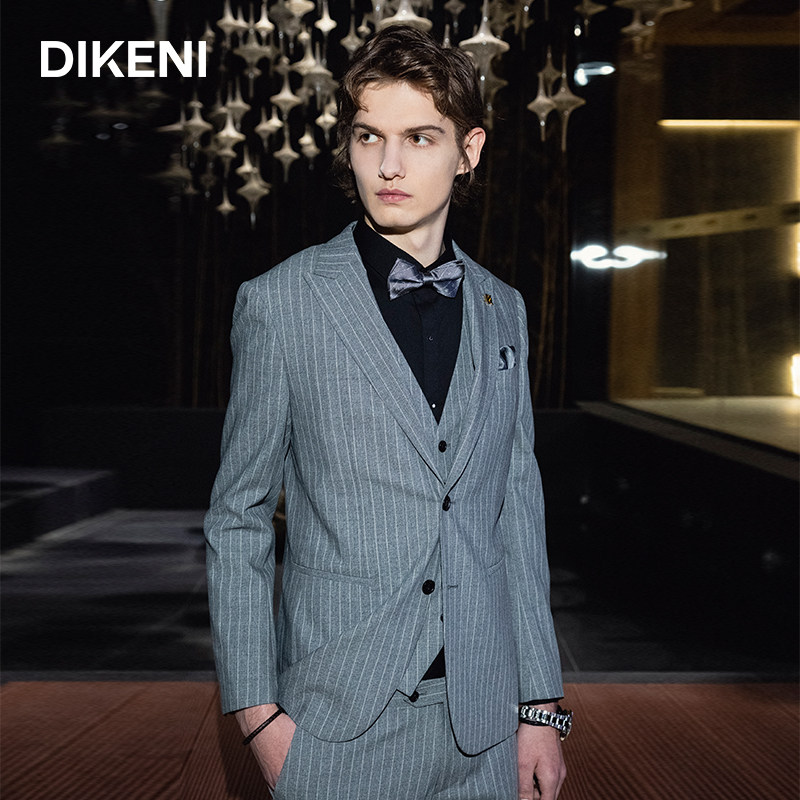 📚 迪柯尼高定商务羊毛西装上衣单西灰色竖条纹西服外套男11301G001