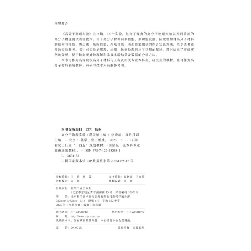 📚 高分子物理实验周天楠 主编 李晓瑜、袁丹丹 副主编大学教材化学工业出版社凤凰新华书店旗舰店